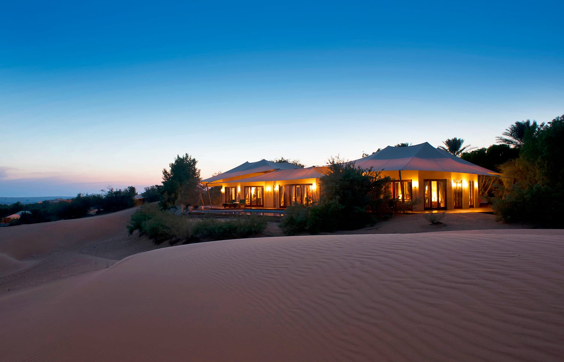 Tented, private Arabian villas are perched on a hill overlooking soft, rolling sand dunes. Each villa comes with a private, temperature-controlled pool, handcrafted furnishings and antiques, a spacious bathroom with Bulgari amenities, and unique personal touches such as easels and binoculars.