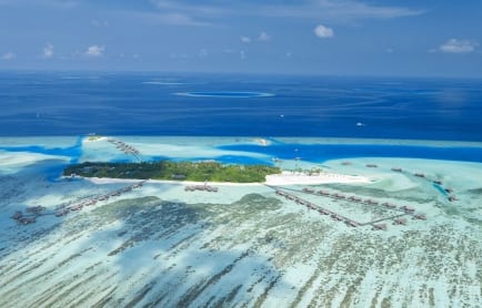 Seemingly afloat in the blue lagoon and designed in a rustic-chic style, all forty-five guest villas are built over-water and are open to the outside, with big windows looking to the ocean, walkways and rooftop sun decks. All are very generous in size and laid out to maximize the Maldivian sun, ocean breeze and to provide easy access to the shallow sea.