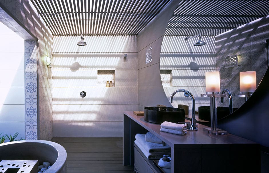 Suites and villas, most with private pools, are set well back from the beach and their design breaks the rules, putting the bathroom outside by the pool and making the outdoors part of the bedroom.