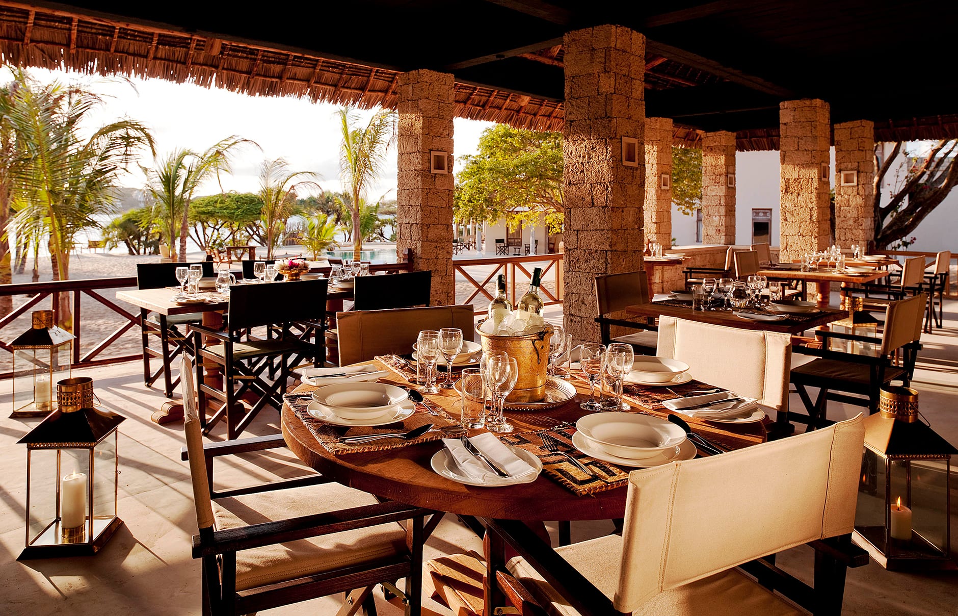 Panoramic bay views are also ensured from the restaurant roof bar, which is topped by a soaring 14-meter high makuti roof. The open-plan central restaurant and a state-of-the-art kitchen boast seven chefs, who contribute to making the varied Japanese-Italian-Swahili-International menu.
