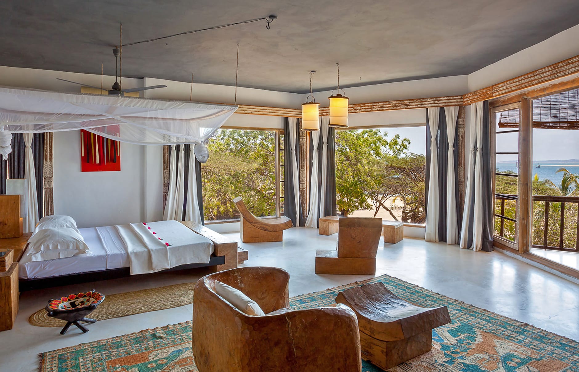 The villas, built from the local white-bleached coral blocks, house unique African artifacts and family heirlooms as well as a private collection of art. The interiors tastefully combine Swahili, Arabic, Indian and Italian influences.