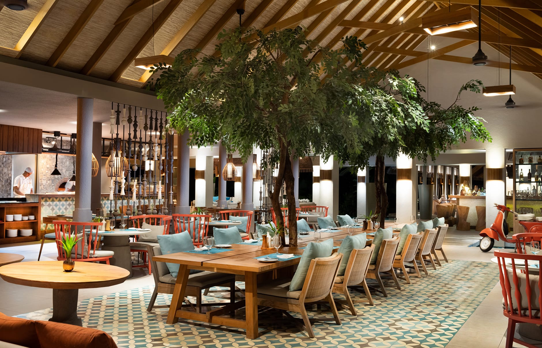 But cuisine is but one side of the Vakkaru experience. You can fill your day with water sports, such as kayaking, sea bobs, jet skis, and catamarans, and the diving center here is exceptional. Manta rays are a frequent sighting in the nearby waters.
