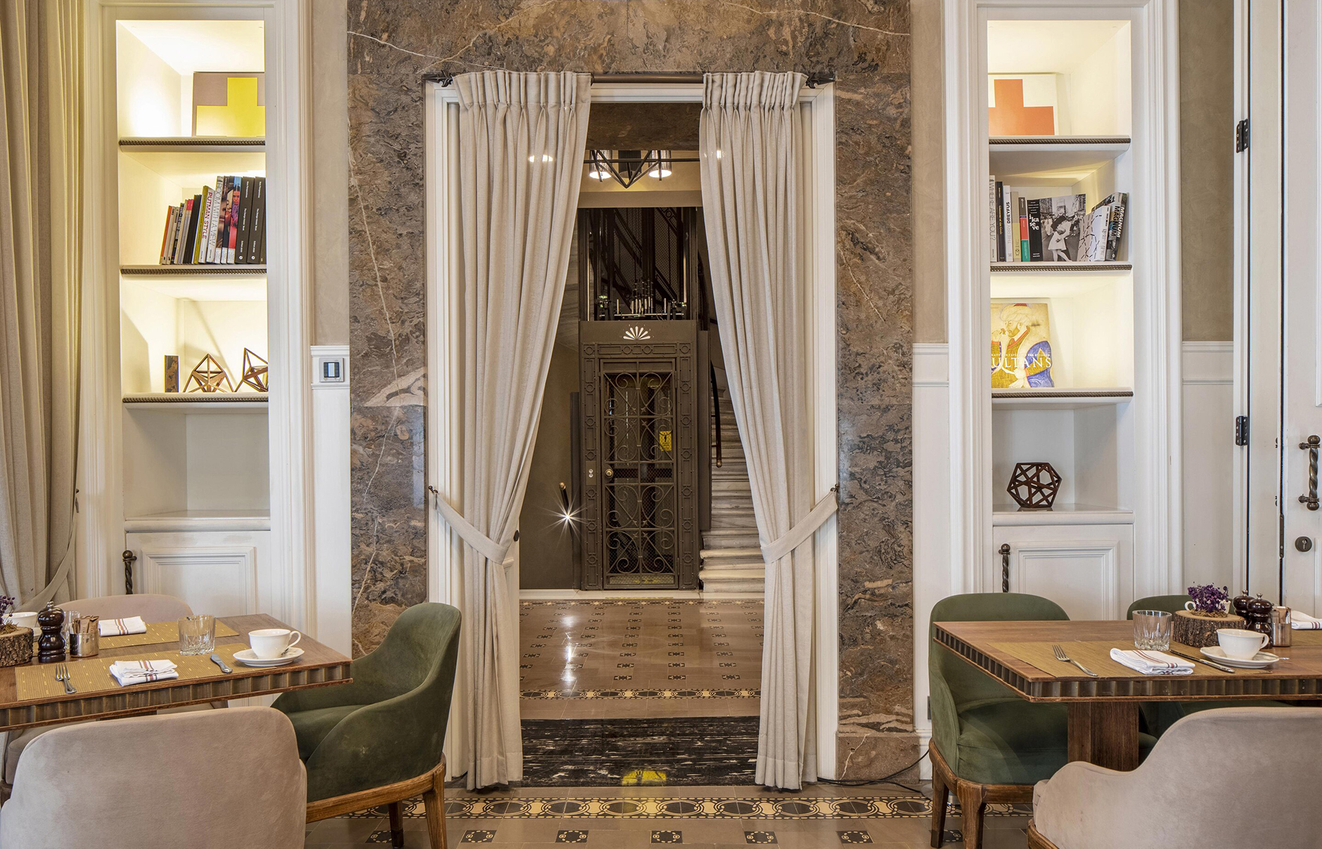 Having taken over a former bank, the designers creatively repurposed the old spaces of the building and incorporated heritage elements into the design. Thus, the old vault became a wine cellar, with the humongous reinforced door now guarding new treasures — those of the palate rather than the wallet.