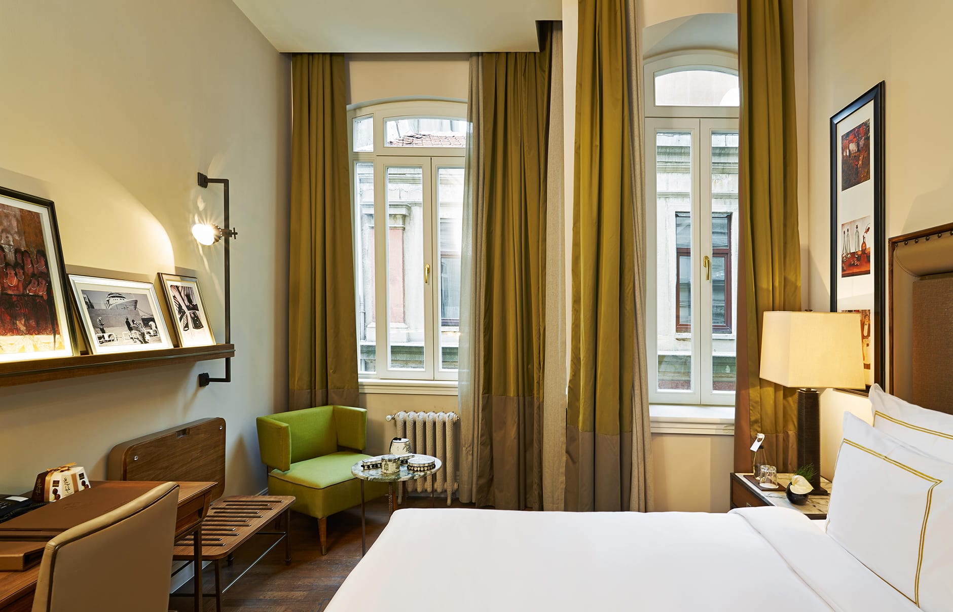 The chic design of The Bank Hotel perfectly balances refined aesthetics and modern comforts, reflecting the strength of Turkish hospitality and the talent of local architects, designers, and artists — e.g., in its impressive collection of local art.