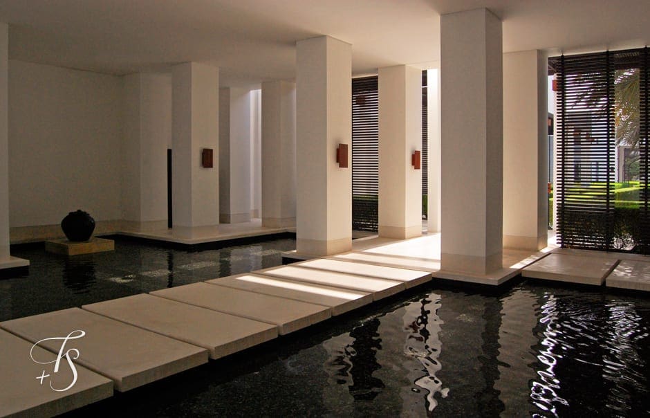Chedi combines Omani warm hospitality with the drama of architecture infused with the Far-East Zen philosophy. The results of the architect’s work are quite spectacular, with striking contrasts employed to a great effect.
