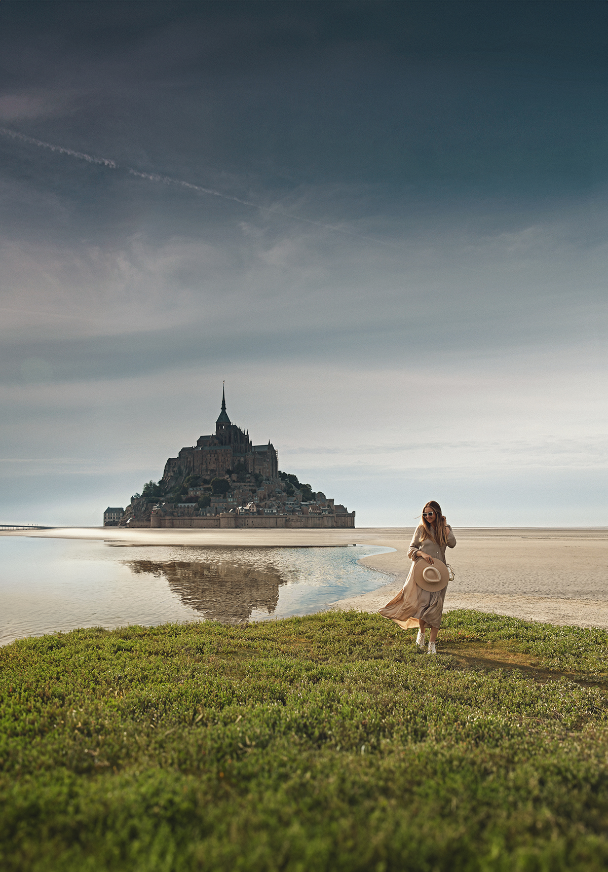 While most photographers cluster at the dam or causeway—the traditional spots for Mont Saint-Michel shots—we went for a special place: a pastoral field where a local farmer releases a flock of sheep. The field is distinctive thanks to its curved drainage ditches that add sculptural interest to compositions, especially at golden hour when shadows emphasize their contours. Here is the Google maps link fir the entrance to the field if you want to find it.