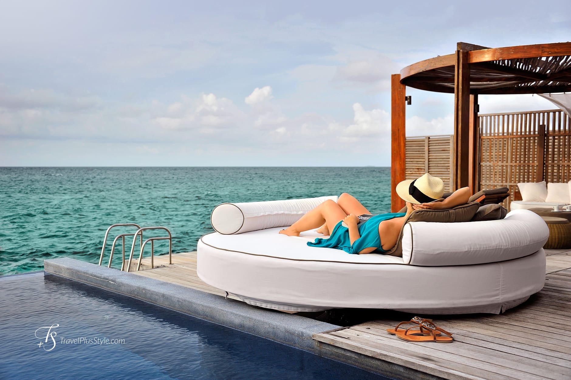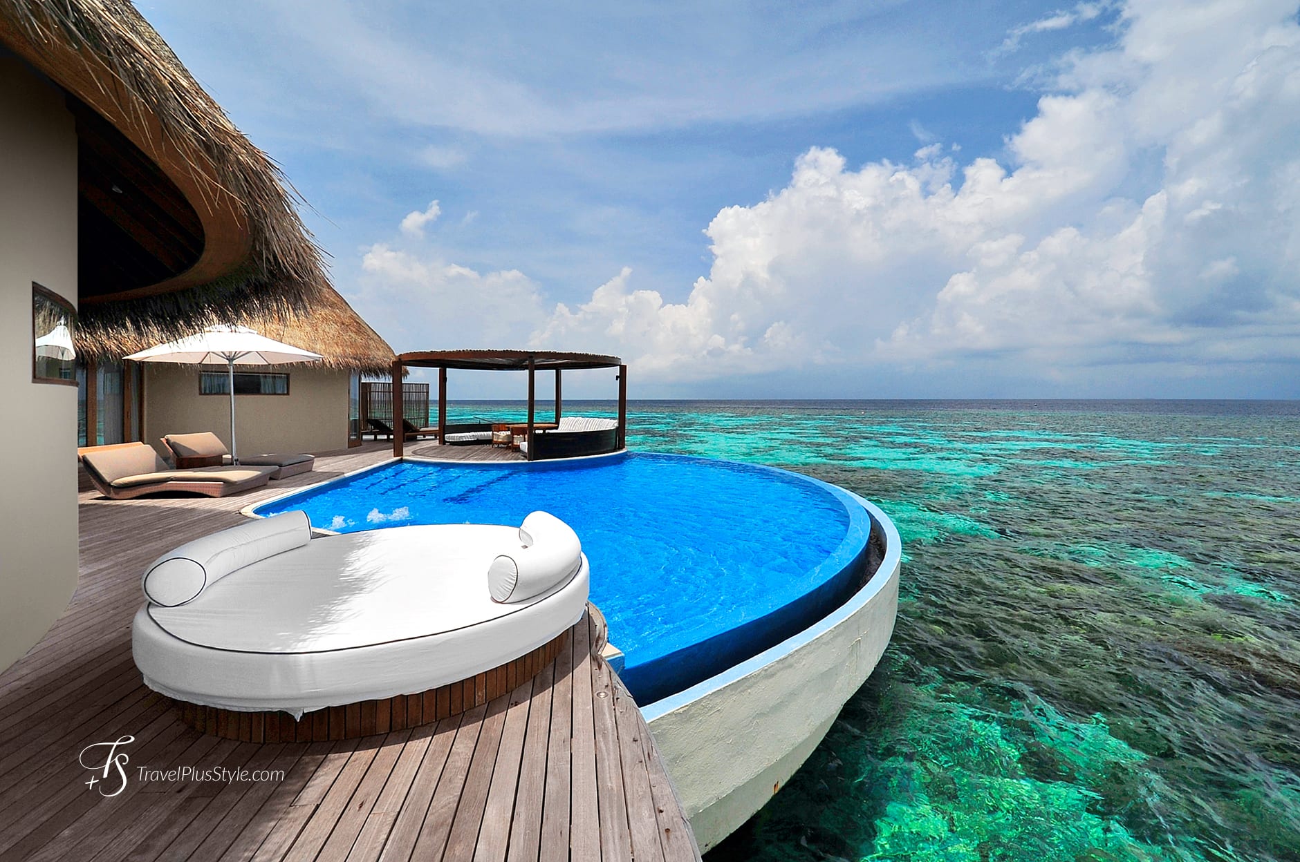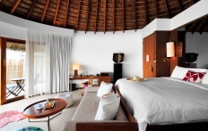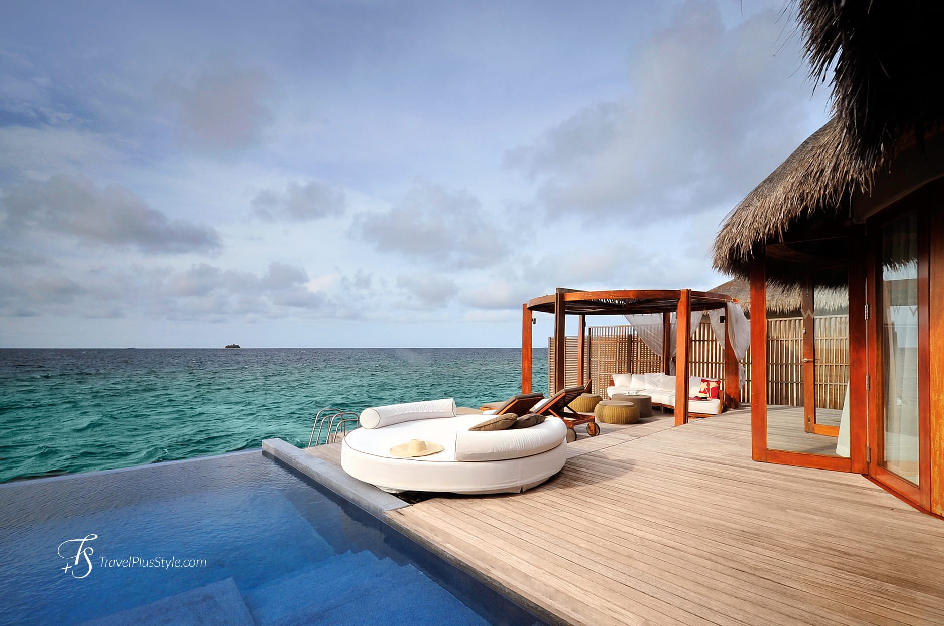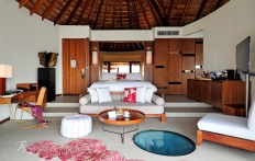 Overlooking the sea, the gorgeous water villas have a private pool with daybed and a beautiful gazebo, set up on a private deck.