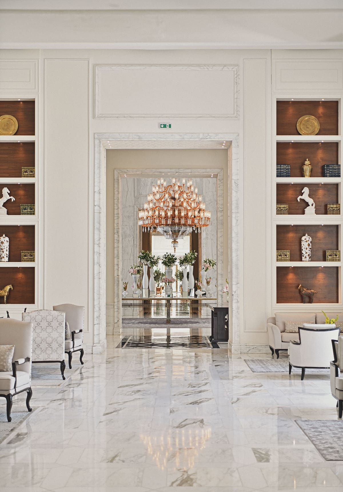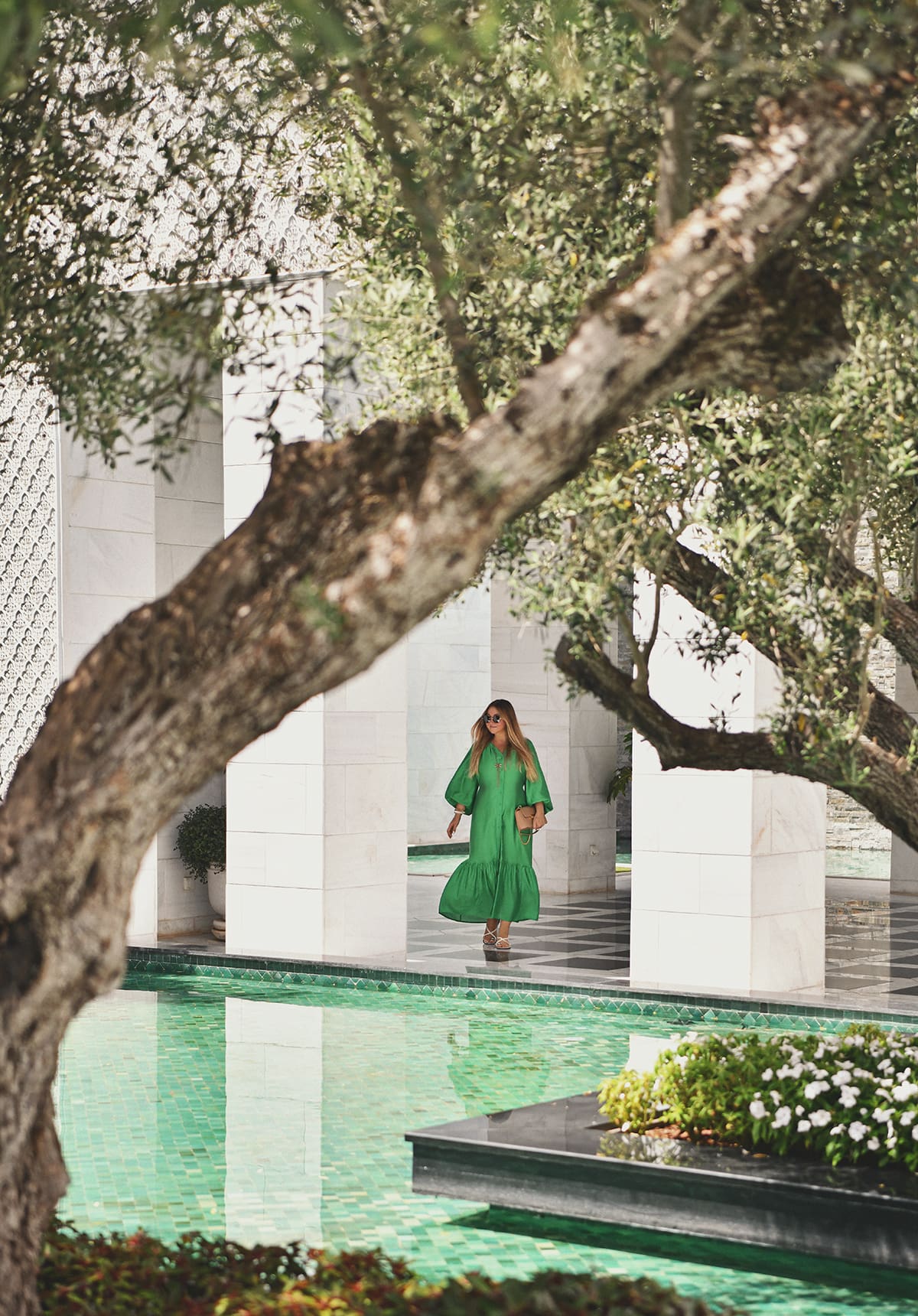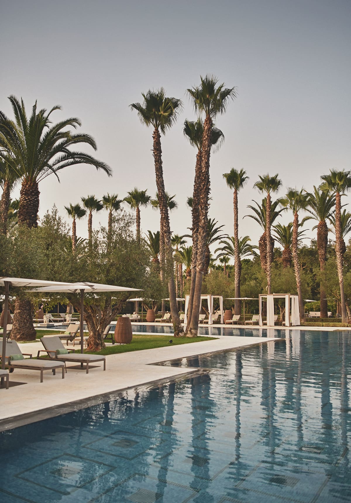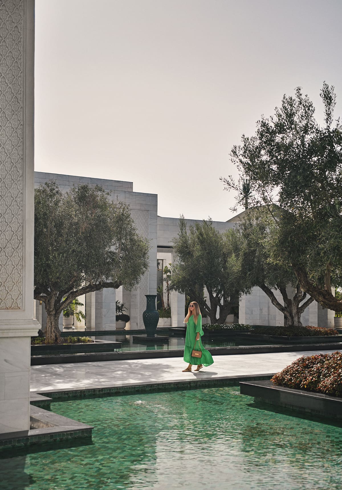 Beyond that, imagine a soaring lobby and manicured grounds that stretch for acres. And then picture the palm-lined walkways, the sculpted olive groves, the shimmering fountains… With every step, we felt like retreating deeper into a world of tranquil elegance.