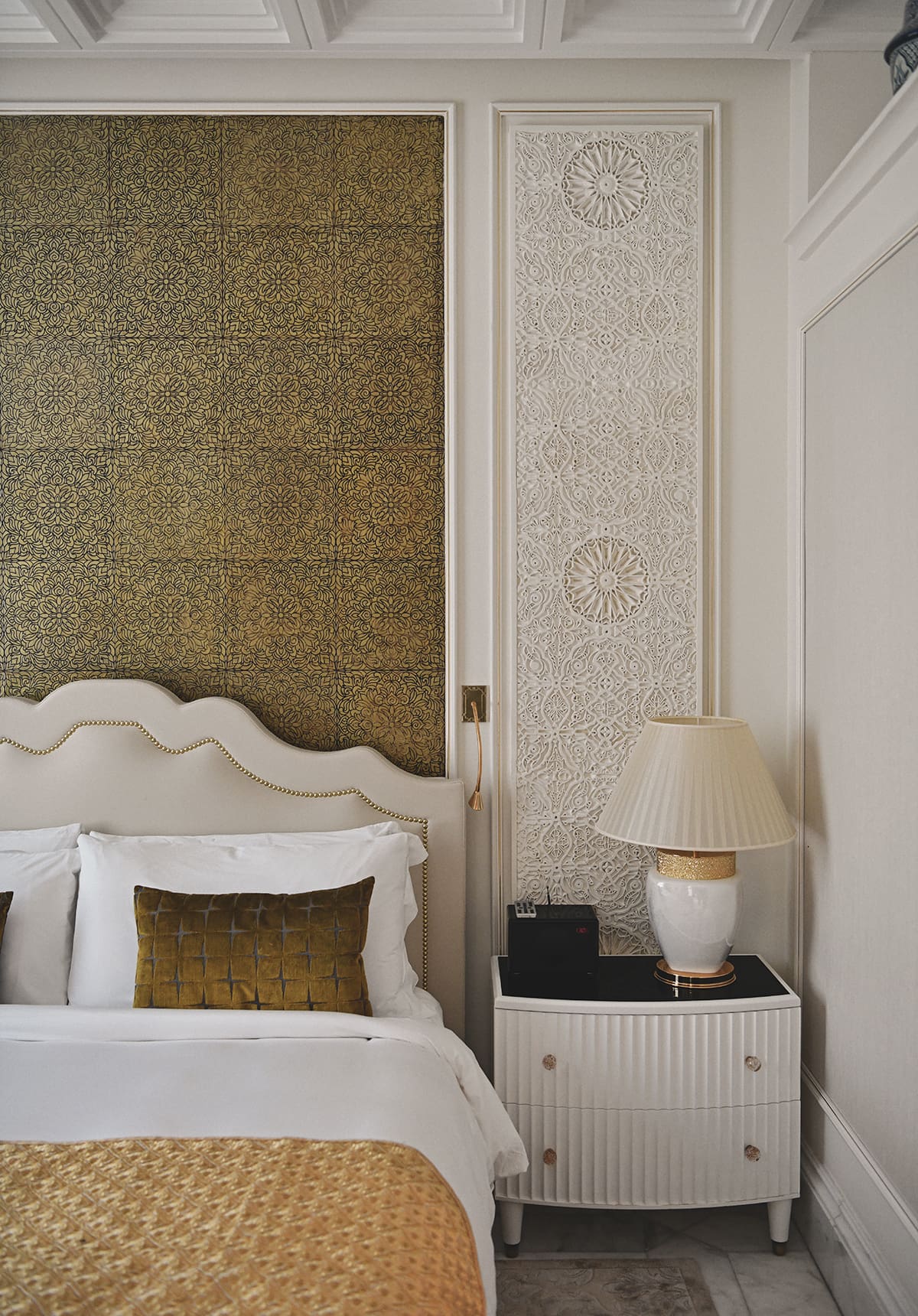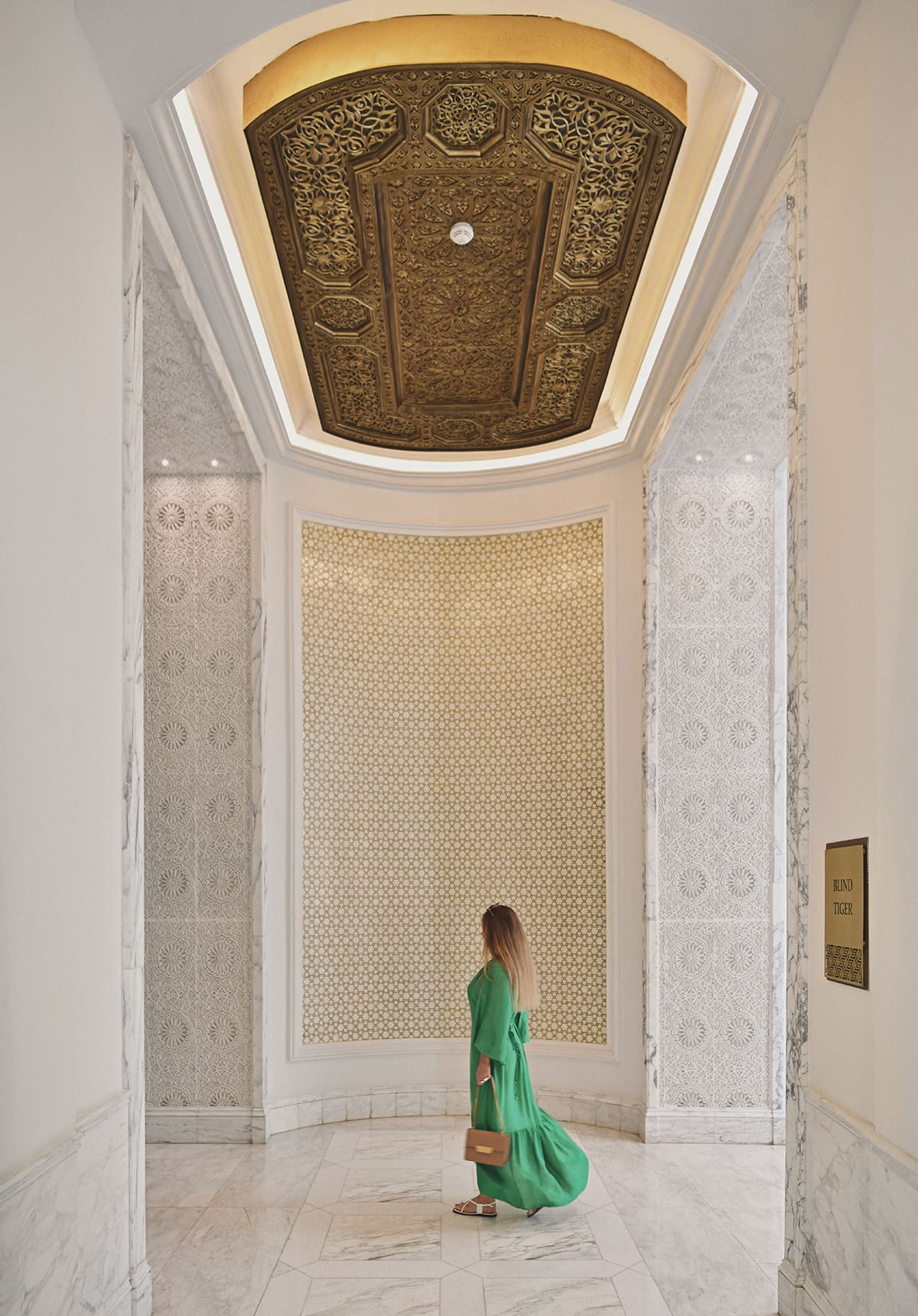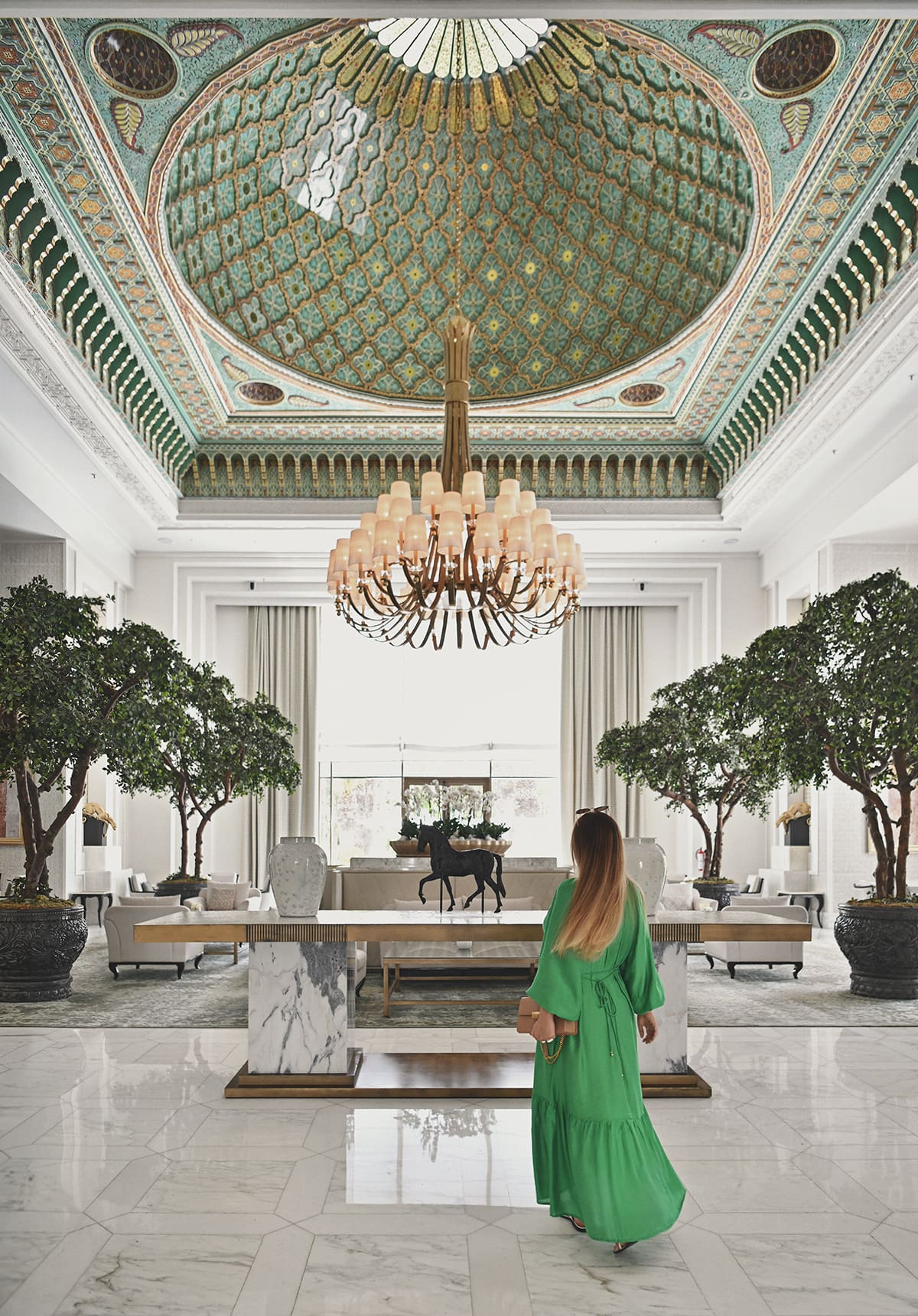 Once we stepped into the soaring lobby, the first impression was one of classic Moroccan grandeur, defined by high muqarnas ceilings and intricate zellij tilework, with numerous panther sculptures and framed pictures of Ottoman-era hunting scenes adding a touch of decadence.