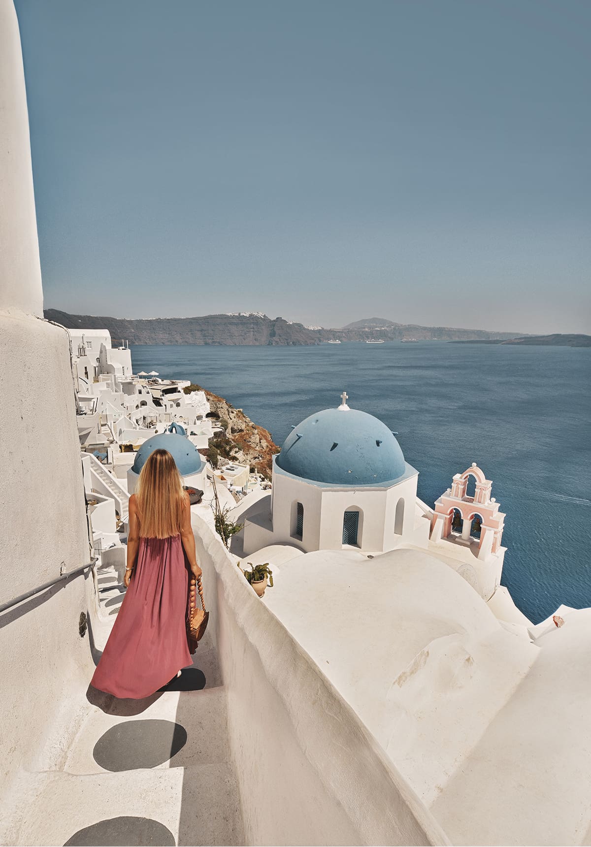 Santorini’s prettiest town is very close by though, and we’d often go there for a walk early morning—before the cruise ship crowds arrive—and with the sun still young in the sky. For us, Oia was the prettiest with its pathways deserted and fresh from the morning mist.