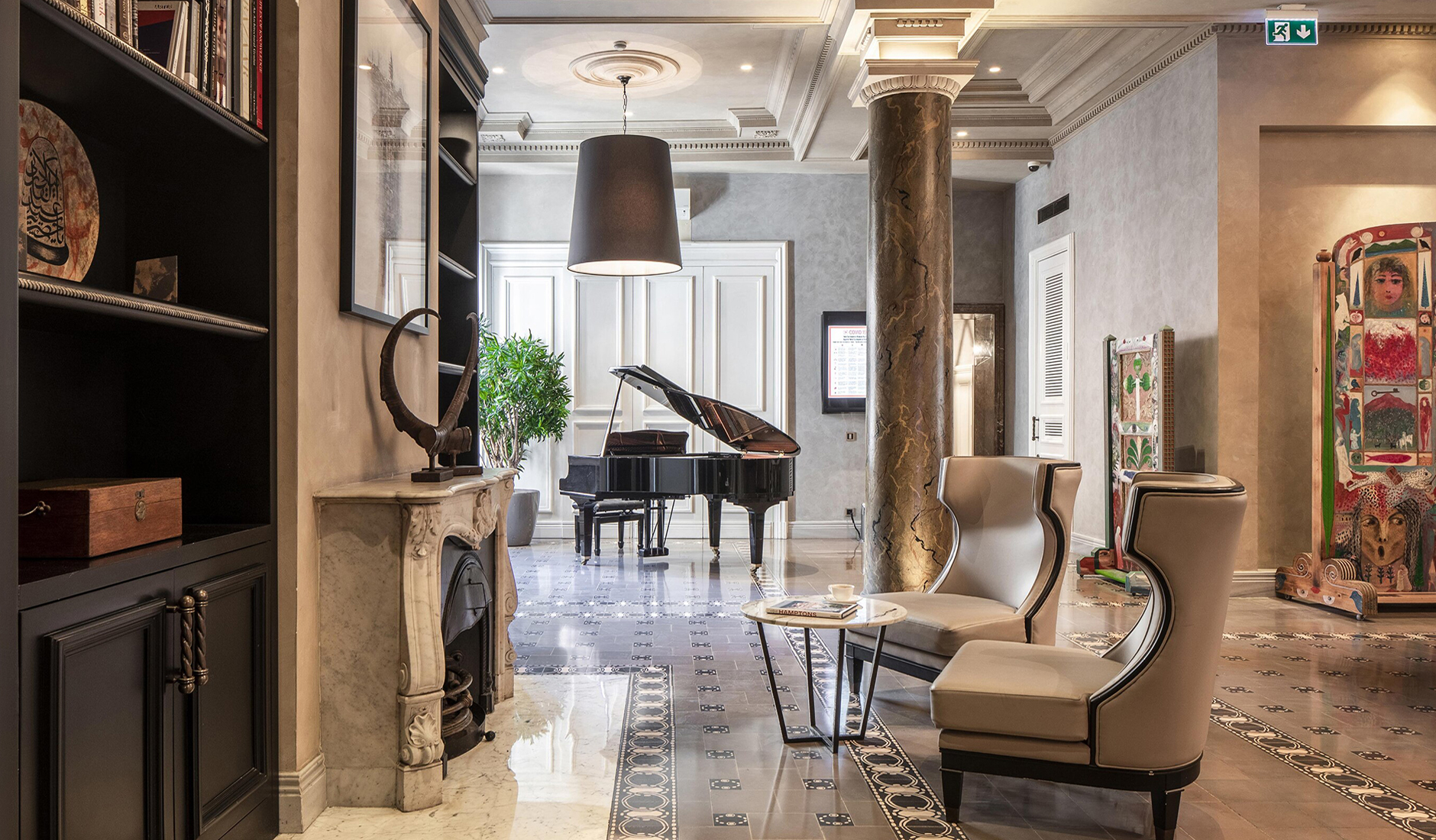 Designed initially for the Deutsche Orientbank some hundred years ago, the impressive building housing The Orientbank Hotel Istanbul stands out from afar with its distinctive lead-grey roof. Today, the property proudly displays its period elements, such as the original rooftop dome, expanding into an unmissable rooftop terrace, as well as a marble spiral staircase. The design brings both contemporary styling and modern amenities to this heritage building. Guest rooms are generously sized, up to 45 square meters, and the service comes with a 24/7 butler. The Jazz Bar on the ground floor is excellent for both dining and cocktails.