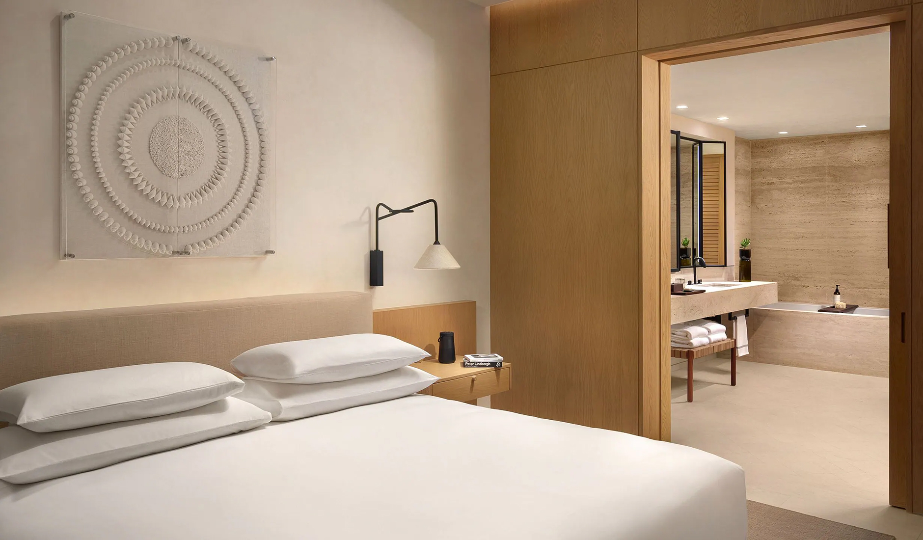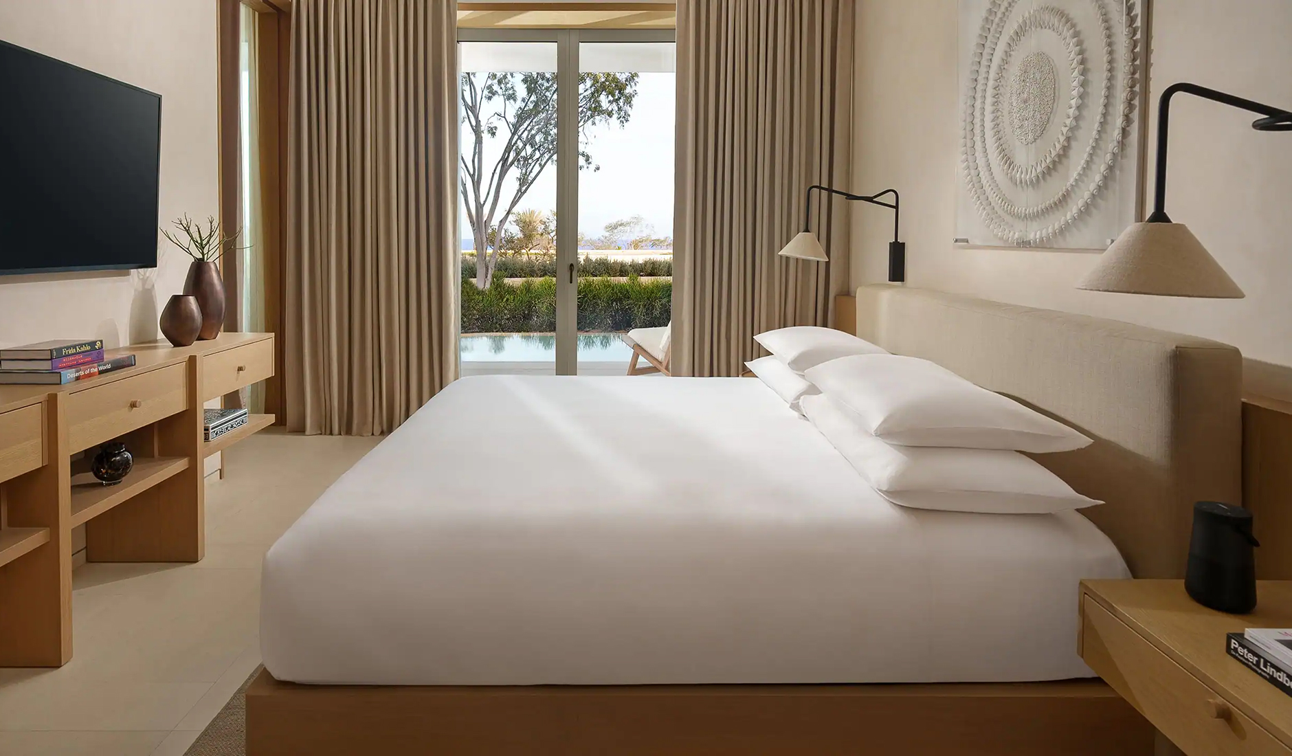 Amid the beautiful swimming pools, the stunning spa clad in stone, and the excellent steakhouse dining venue, the accommodation stands out with the highest standards. The 160 rooms and villas are lavish and secluded, blending local stylistic influences with a contemporary sense of space.