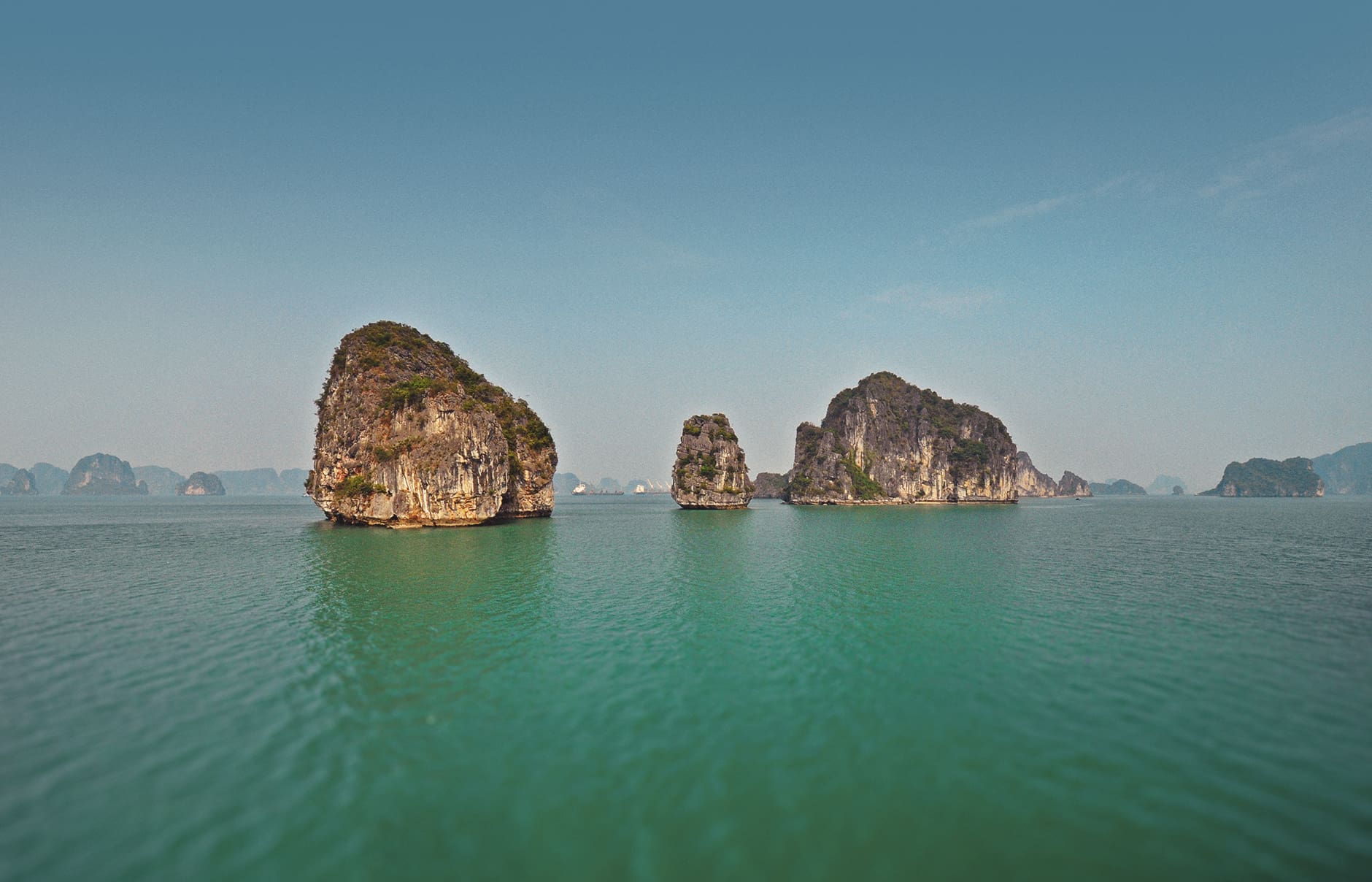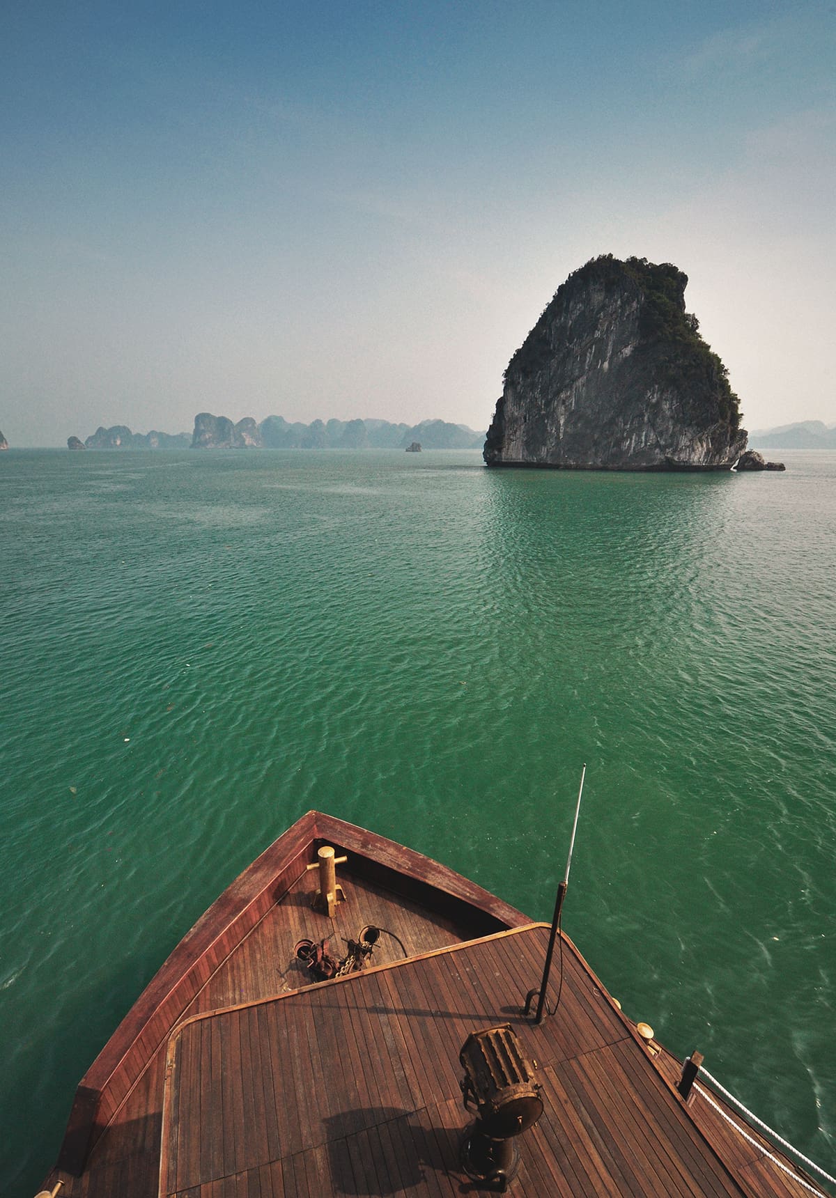Laze in luxury and take in the stunning landscapes of Vietnam's most enchanting bay, where limestone mountains rise sharply from the misty waters of the Gulf of Tonkin, and floating villages cradle the Indigenous sea people.