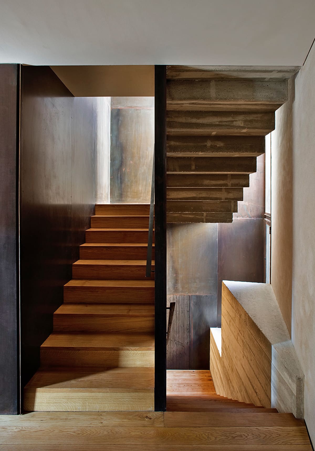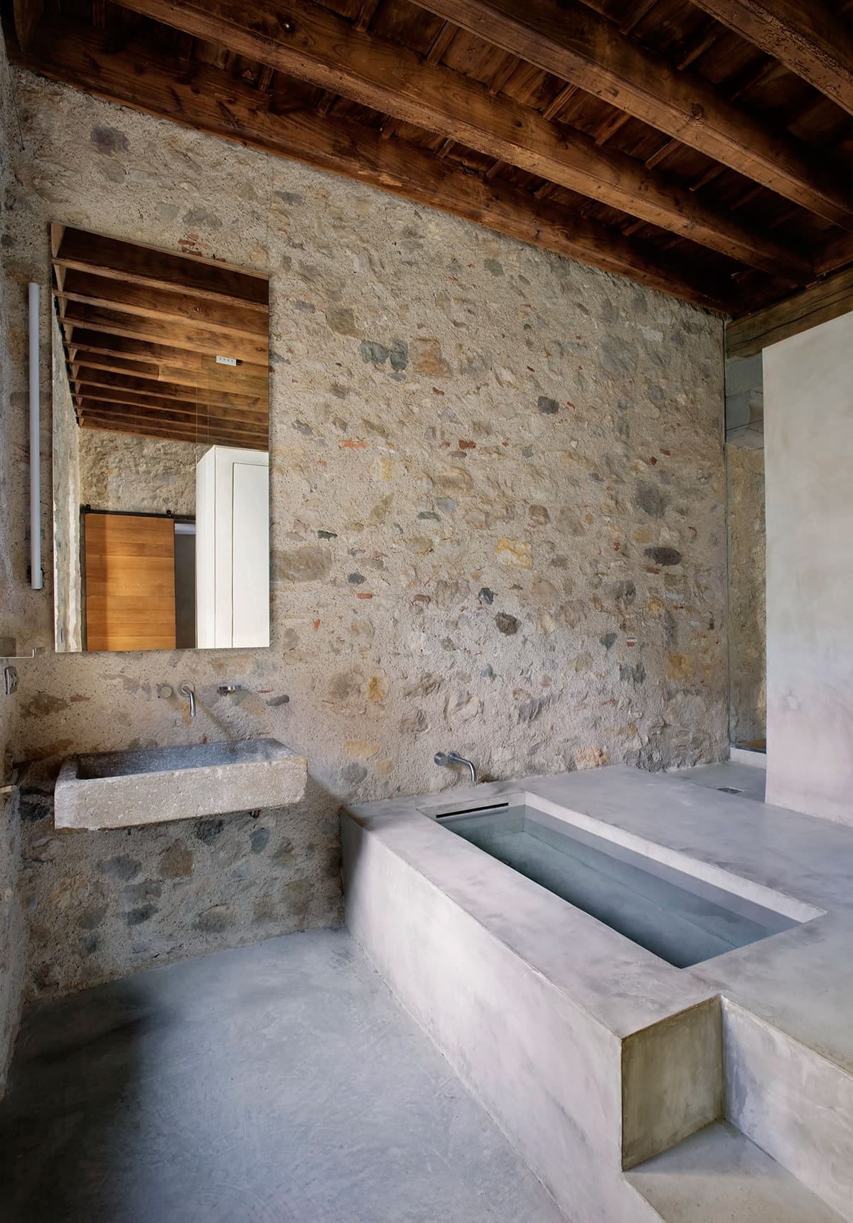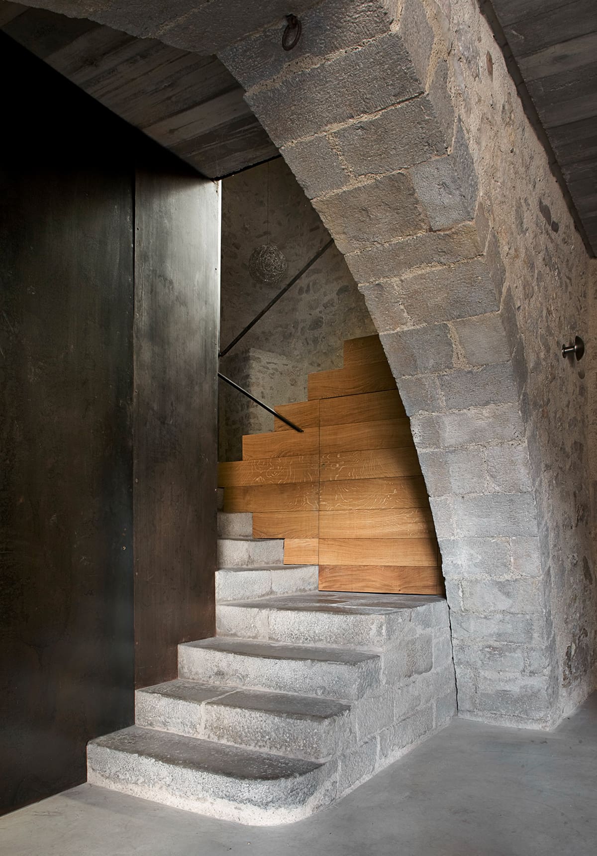 Using an artful combination of steel, concrete, oak and the original stone the architect was able to create comfortable space without sacrificing the integrity of the historical building. This successful conversion relies on finding exactly the right point at which the essentially disparate elements of the modern and the medieval find a common language, balancing out rather than clashing.
