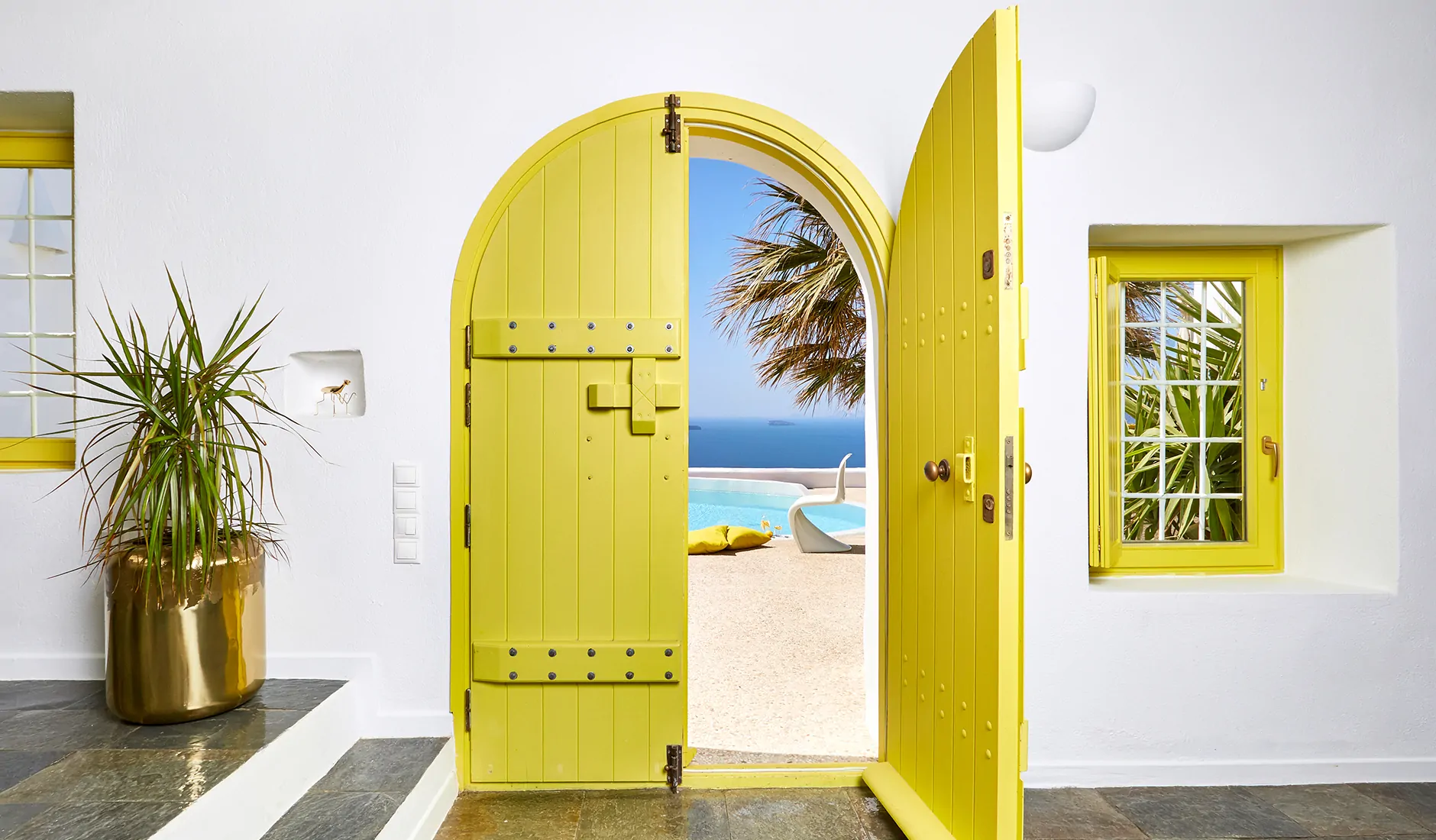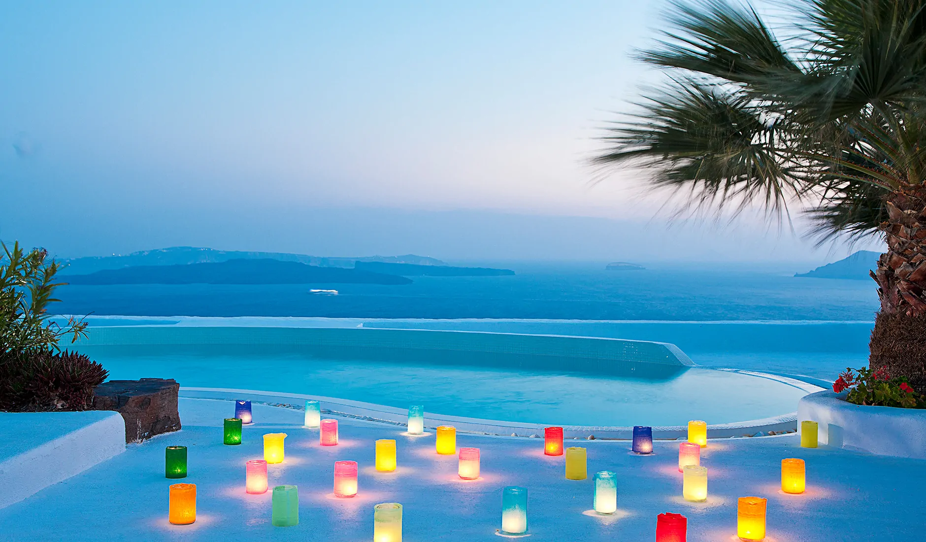 Ftelari Villa in Santorini comfortably accommodates up to six guests, making it a great choice for a glamorous few days with friends, family gatherings, or for accommodating wedding guests… but it is as much a perfect spot for a romantic escape for two, a honeymoon—or a sensational marriage proposal.