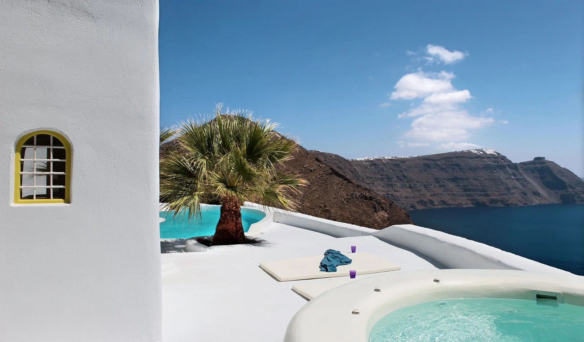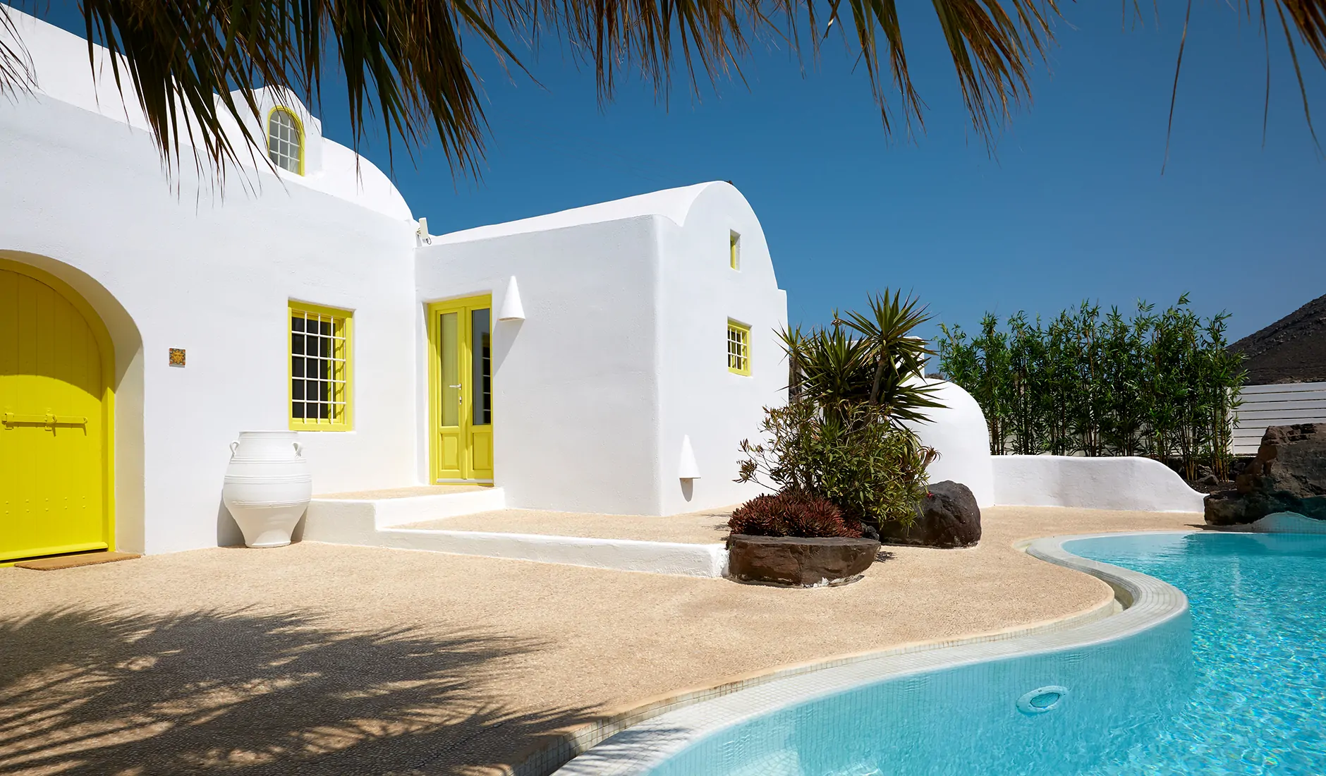 Interior designer Frantseska Tsebelis employed a classic Cycladic style and injected it with contemporary glamour, creating an idyllic ambiance and design worthy of the eternal beauty of Santorini. Her vision resulted in a sophisticated and refined place, with great attention paid to creating spaces as roomy as they are stylish.