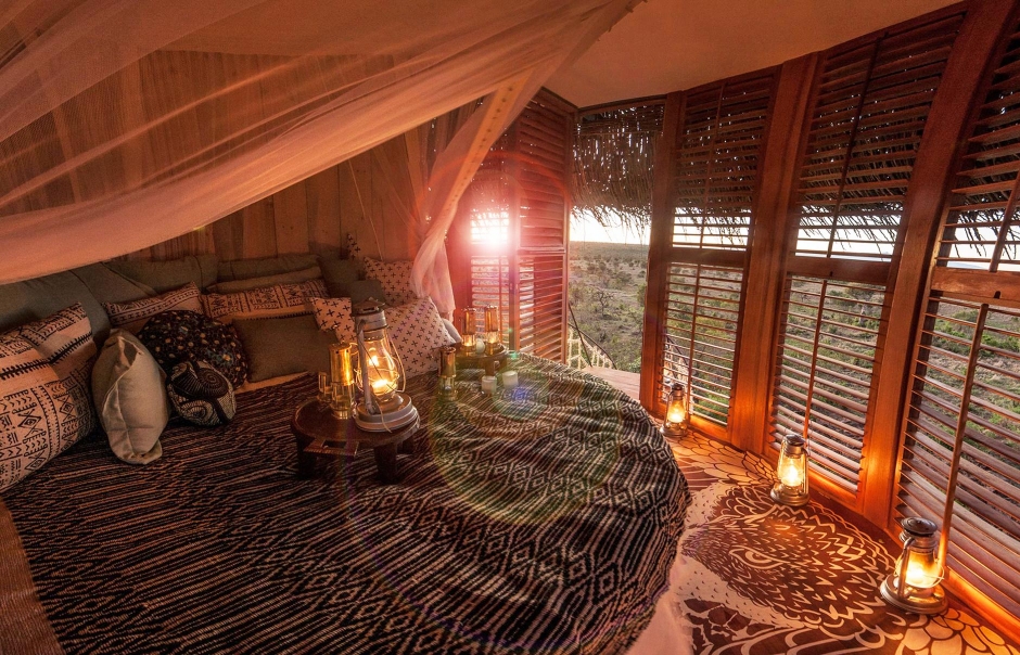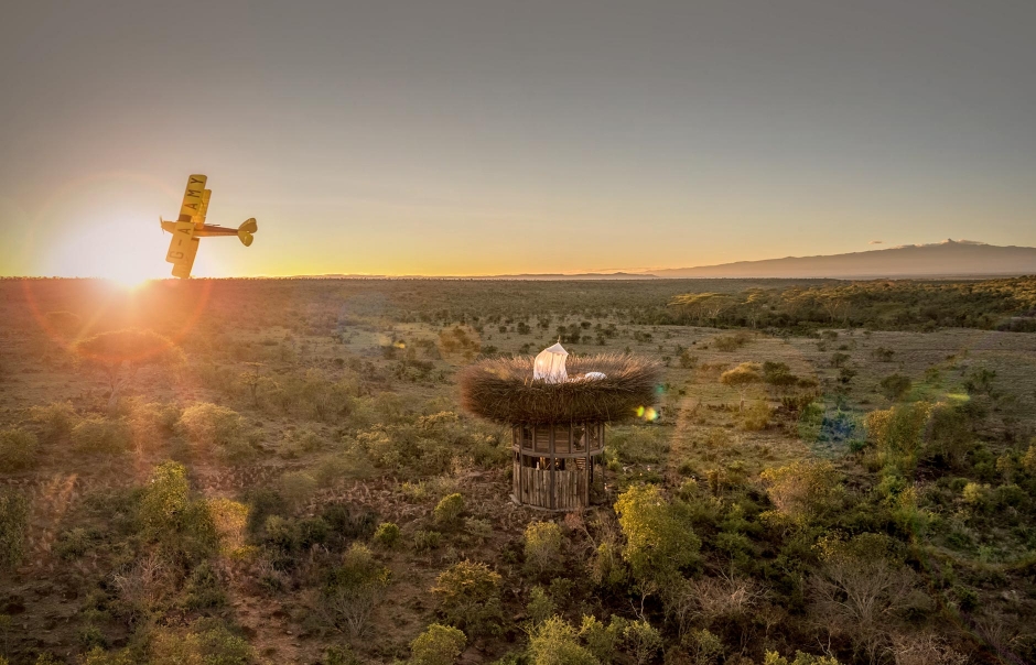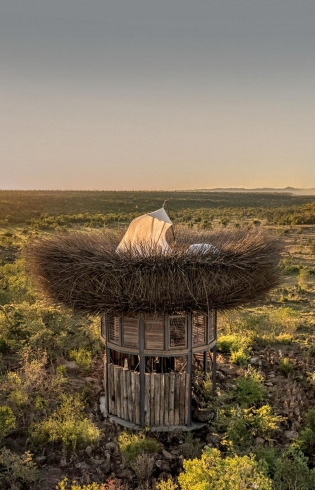 The NAY PALAD Bird Nest was created to evoke the romance of Africa and was designed to touch the need for a contemplation of nature. Located in the heart of Laikipia Plains, the Nest is complementary to the regular Segera Retreat stay — and as such it resembles those under-the-stars experiences typically designed as fancy one-night experiences.