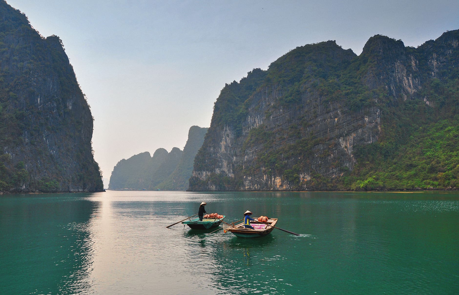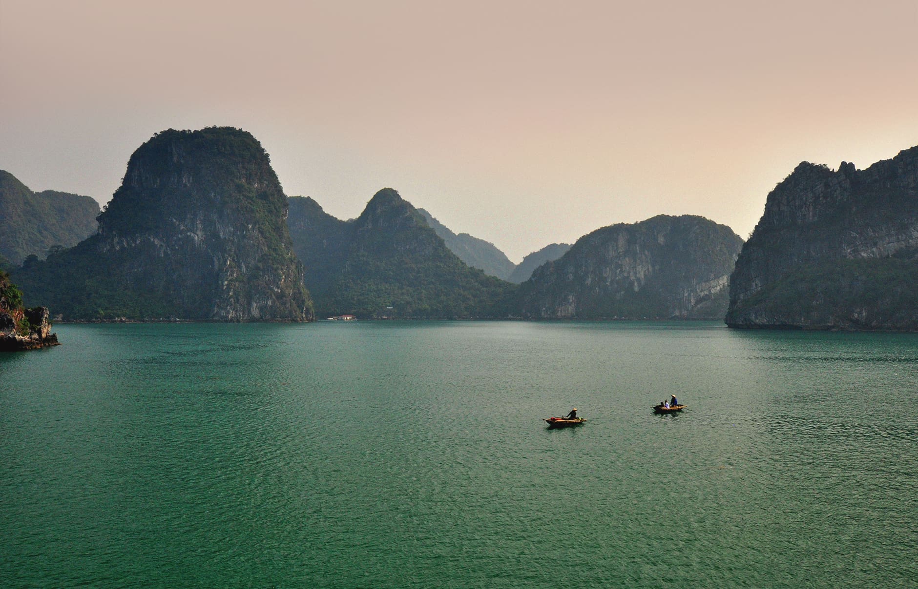 Various guides talk about the “crystal clear” water of Halong Bay, but this is not entirely true. Vietnam’s growing industries left their footprint on this beautiful corner of the world, and so does smog from China, which affects the transparency of the air. And it’s tropics, too, so cloud cover in Halong is not uncommon. It can add to the misty appearance, making the sights even more mysterious, but it also means that sunny and clear days are a rarity here.