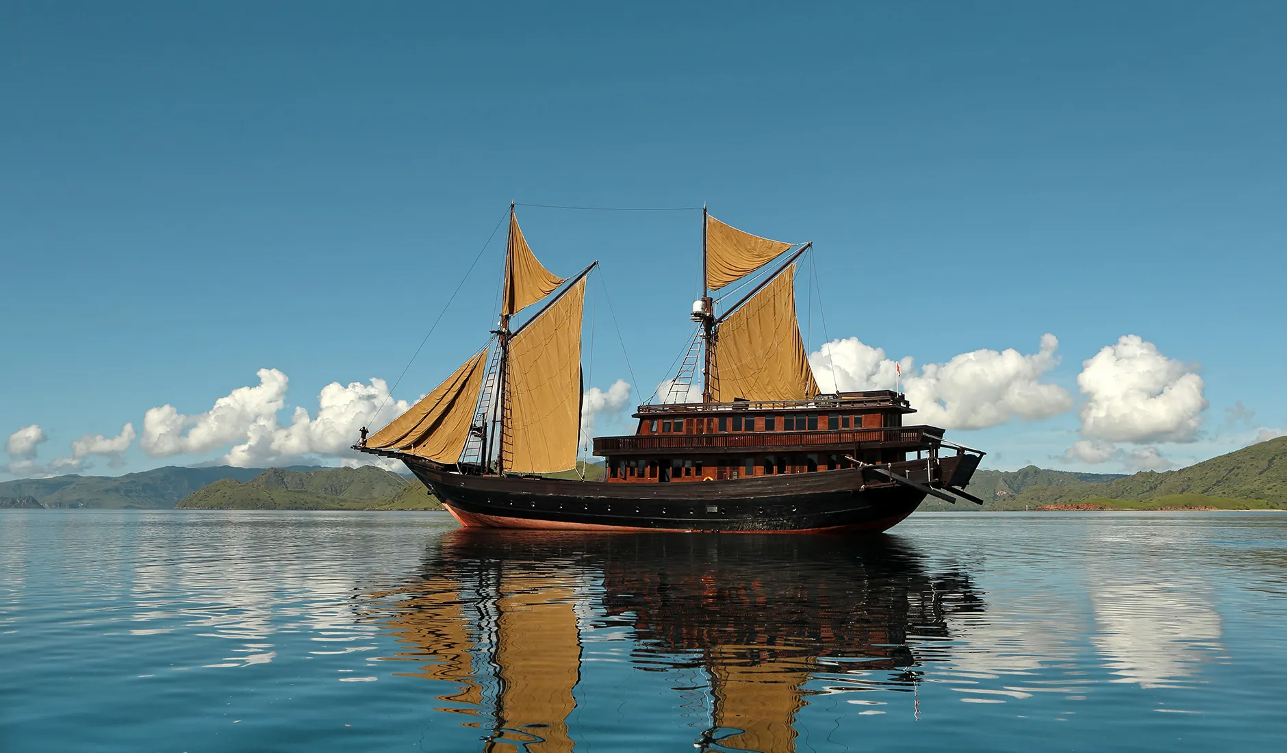 The boat can be also chartered privately for tailor-made cruises (minimum four nights). She can sail to any of the 17,000 islands in the Indonesian archipelago, which consists mostly of uninhabited islets.