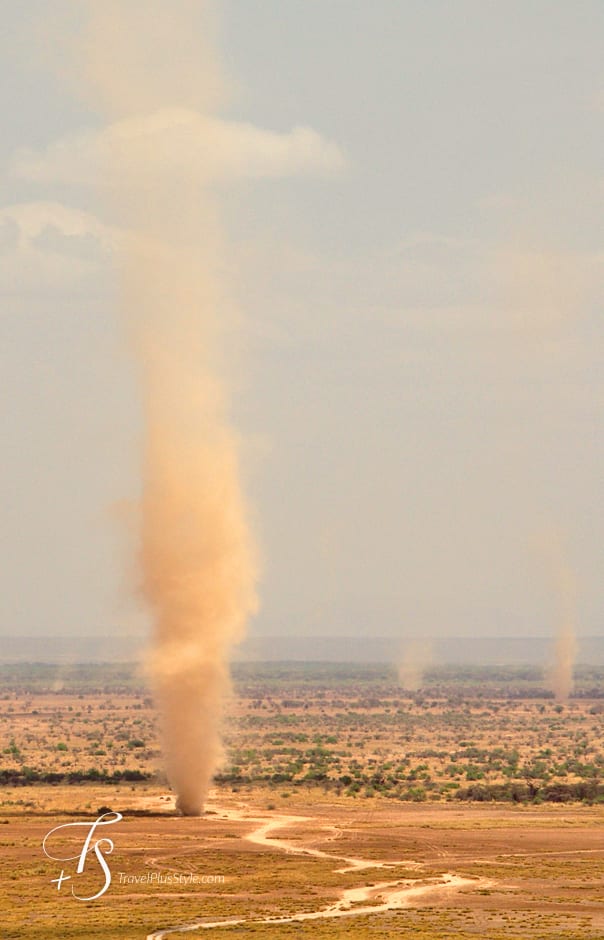 The bottom of the valley in Shompole is dry and flat. Wind raises massive dust twisters and it takes a good pilot to spot one forming before it is too late: few hundred meters high and able to appear in a matter of seconds these twisters can down a small plane.