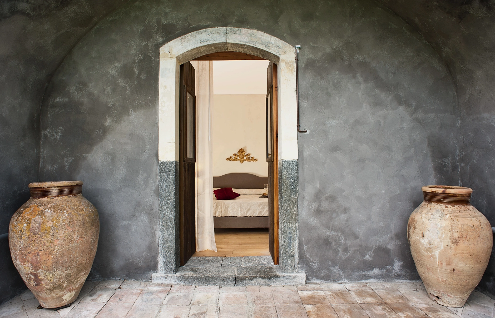 Many Sicilian hotels boast views of Mount Etna, but few can rival the location of Monaci delle Terre Nere. This isn’t just any terre nere—this black earth is volcanic, as the property sits directly on the slopes, albeit the safe lower slopes, of Sicily’s most iconic geographic landmark.