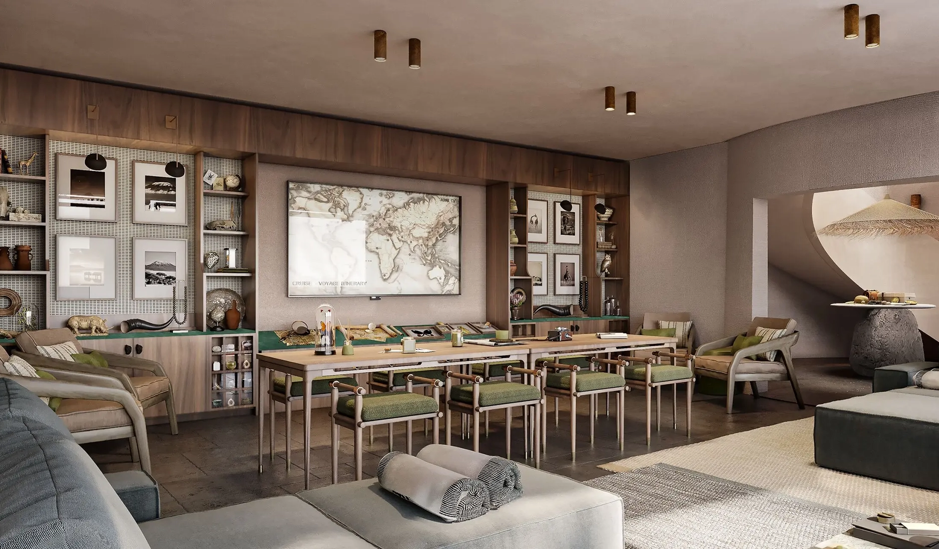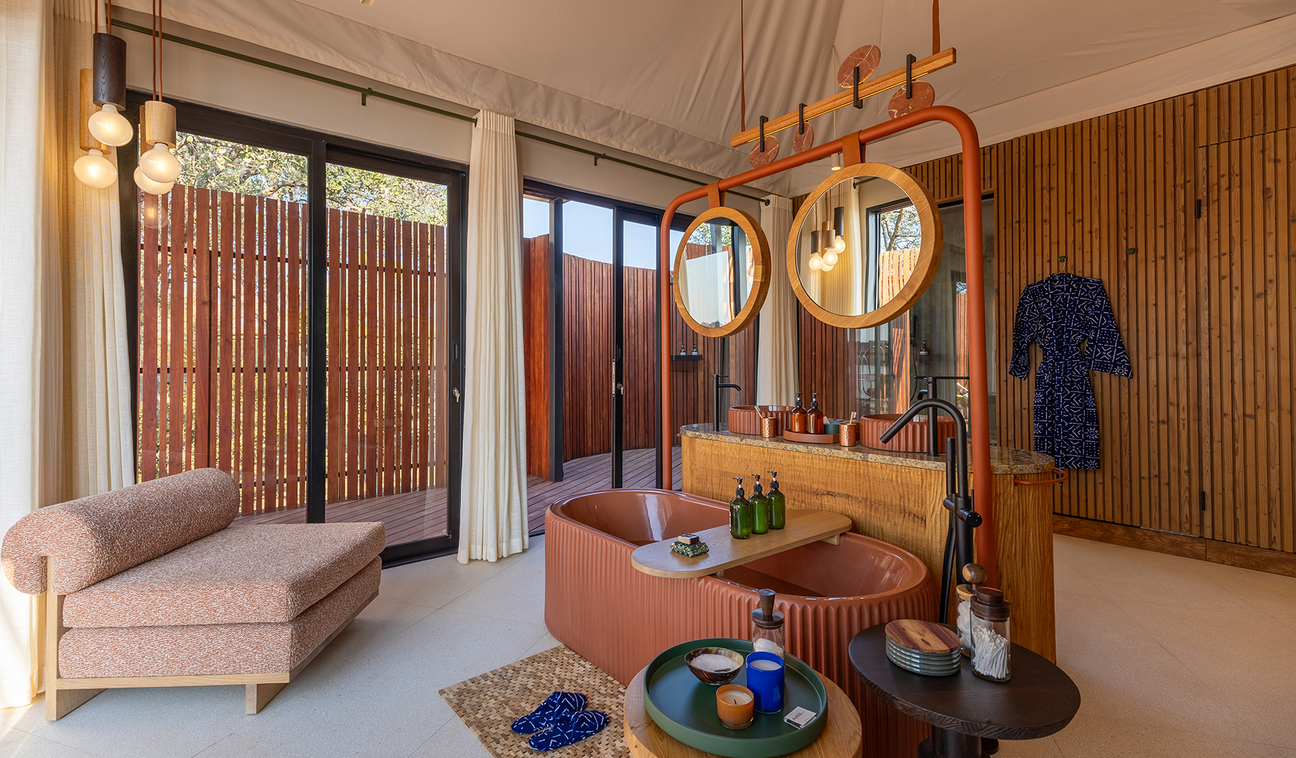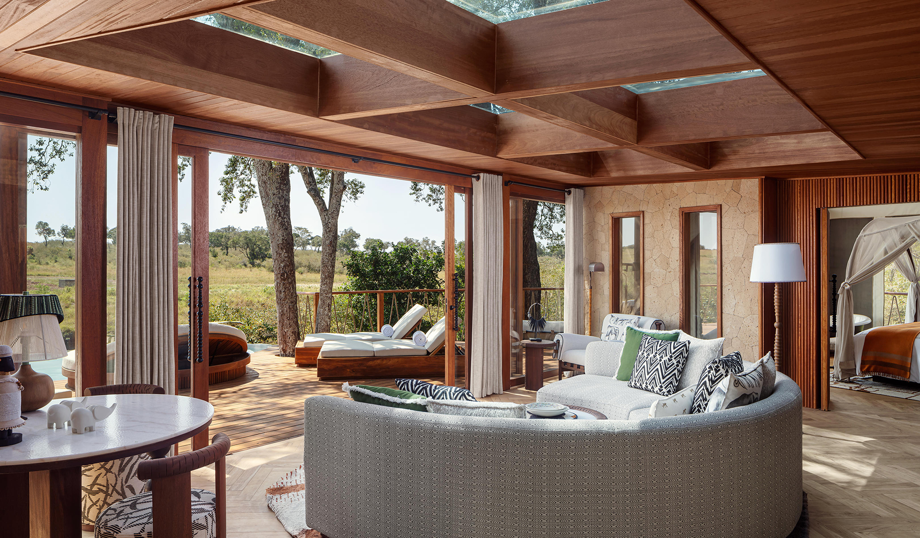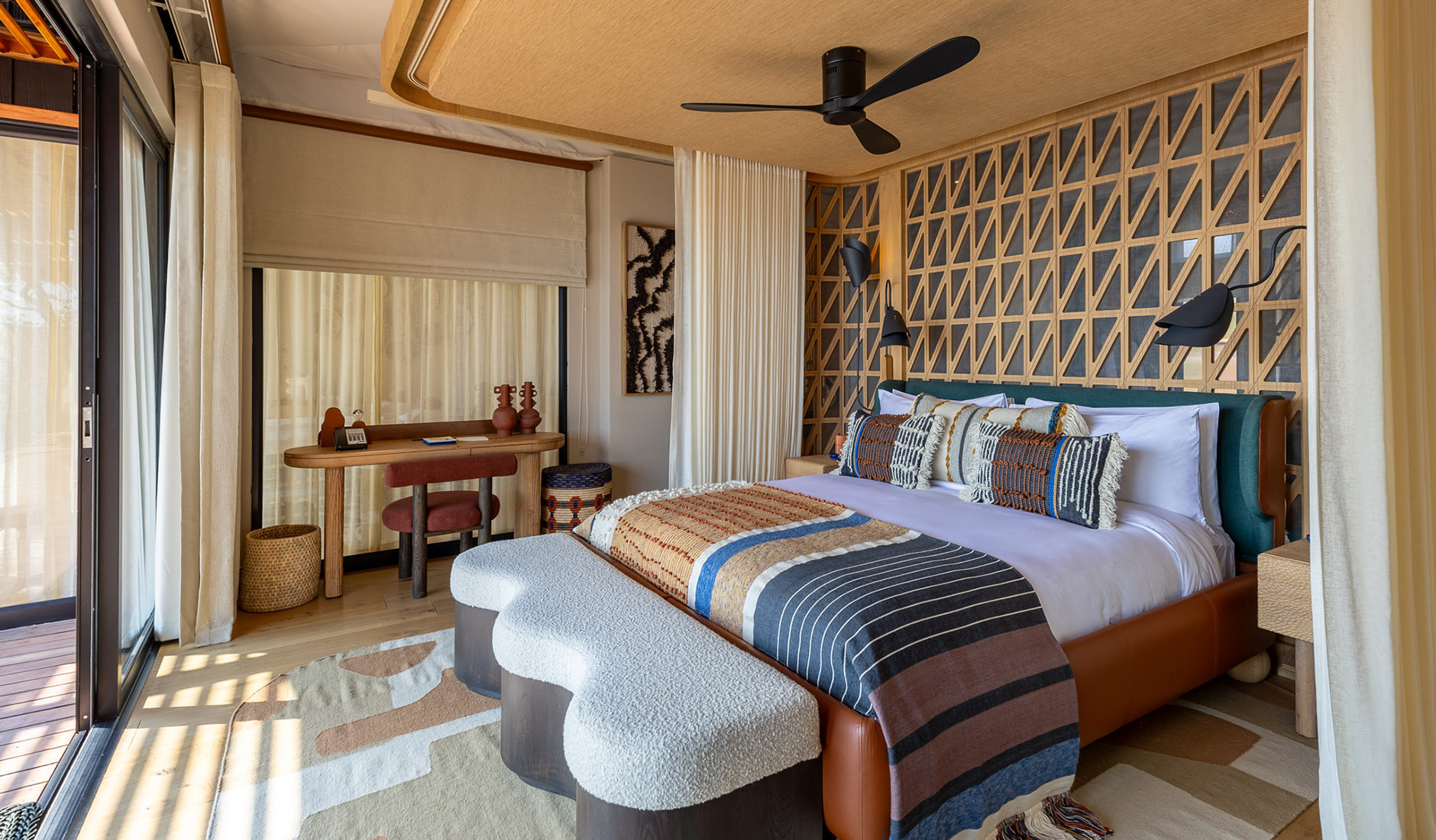 Ubuyu, named for the local baobab fruit, is Banyan Group’s first safari venture. Set in Tanzania’s Ruaha National Park, the six-villa property is designed for a minimal footprint: solar power runs the camp, and the timber, thatch, and clay structures echo traditional Maasai dwellings. The social hub, called the Living Room, flows like a Maasai enkang, while the Mganga Bar frames views of the river. Dining emphasizes plant-forward, zero-waste cuisine rather than typical game-focused safari menus. The Maji Spa on the riverbank offers wellness treatments in a tranquil setting, and ‘Escape Hosts’ guide guests through the camp instead of conventional butlers, fostering a more relaxed vibe.