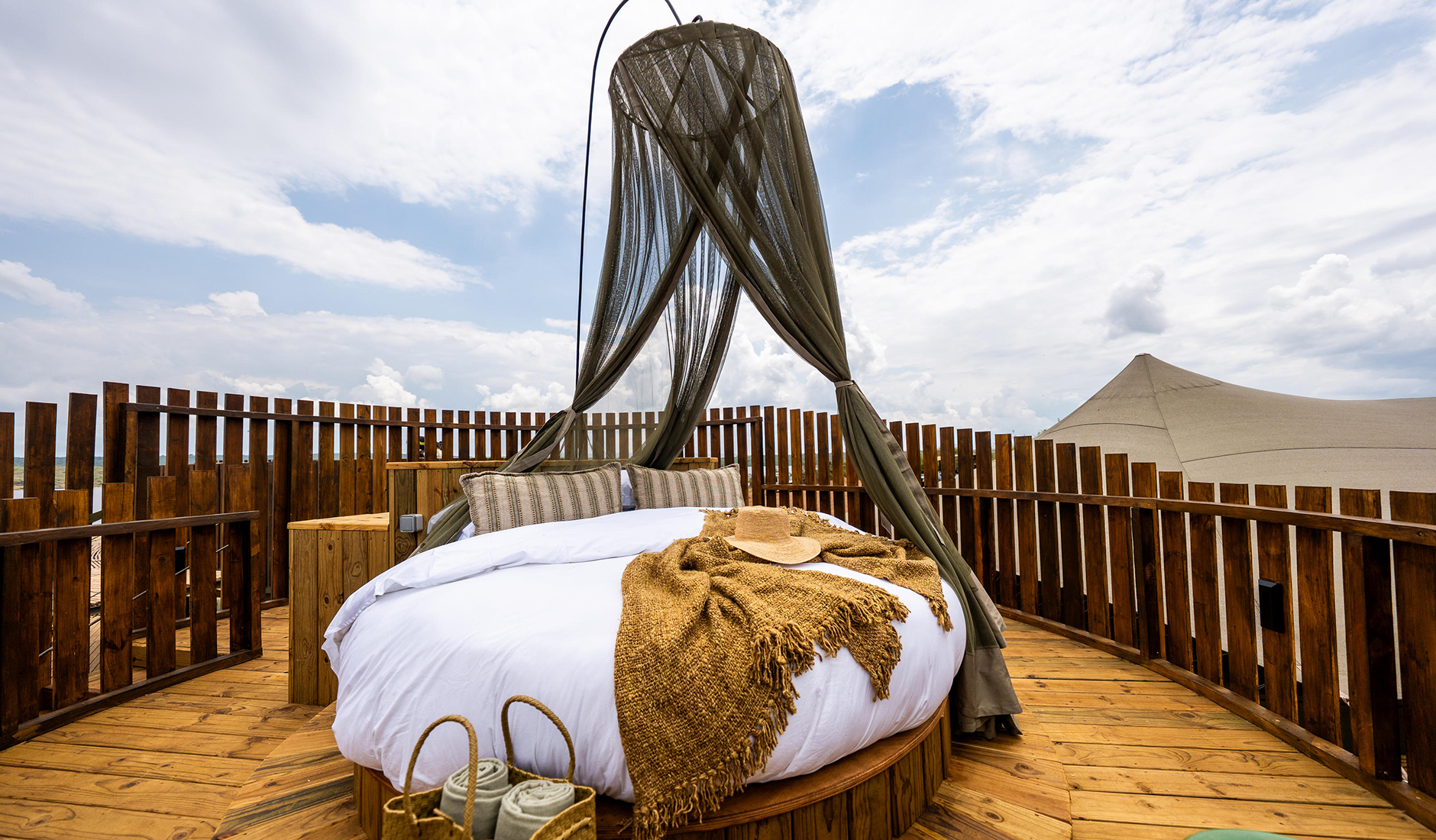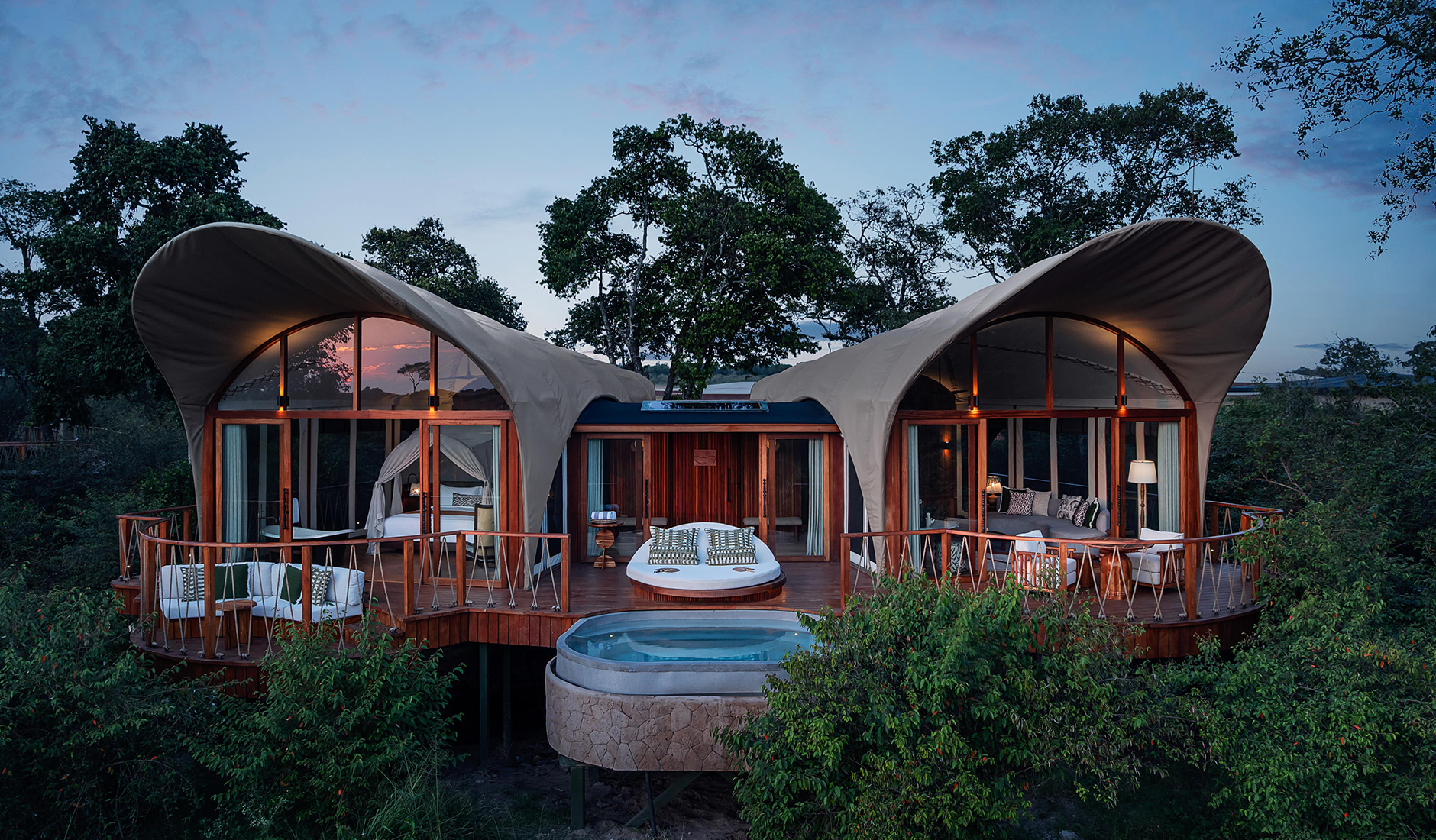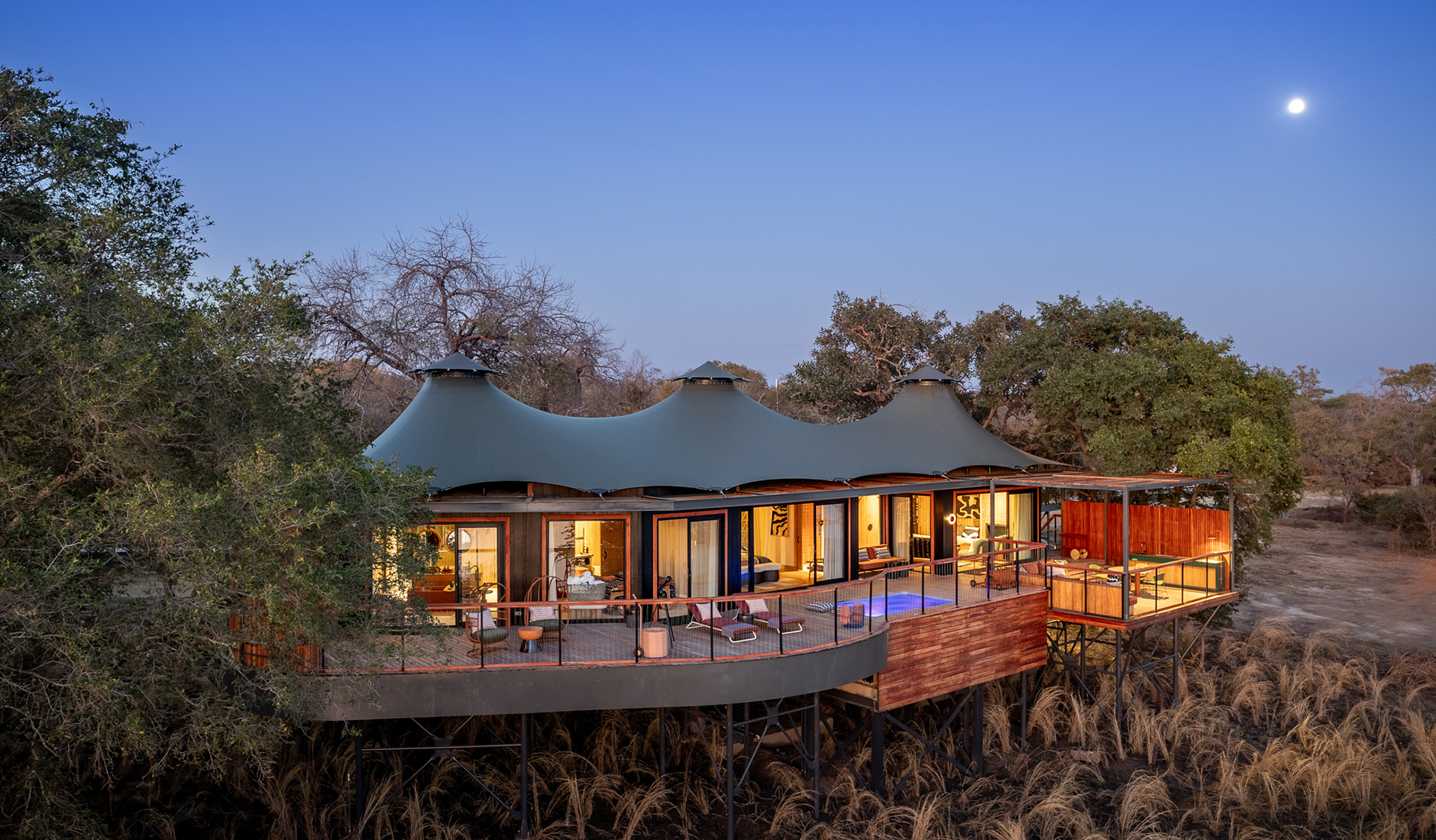 Singita Elela, opening in Botswana’s southwestern Delta, is the Singita’s first property in the region, set on a vast private concession in NG26. The lodge comprises eight stilted, circular camps—five one-bedroom, two two-bedroom, and one four-bedroom retreat—each with private lounges, decks, pools, and dedicated guides, vehicles, and hosts.
