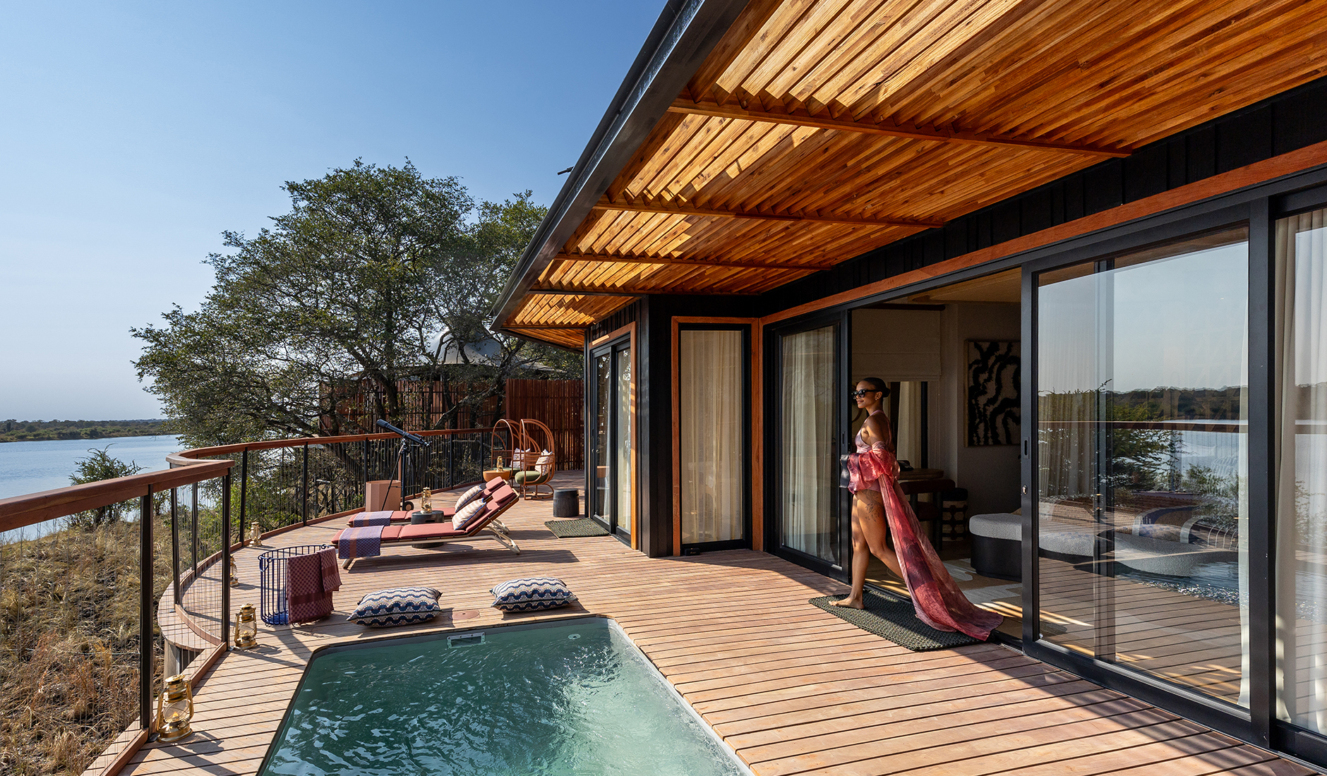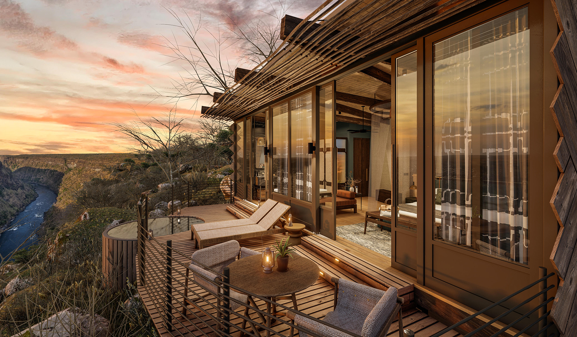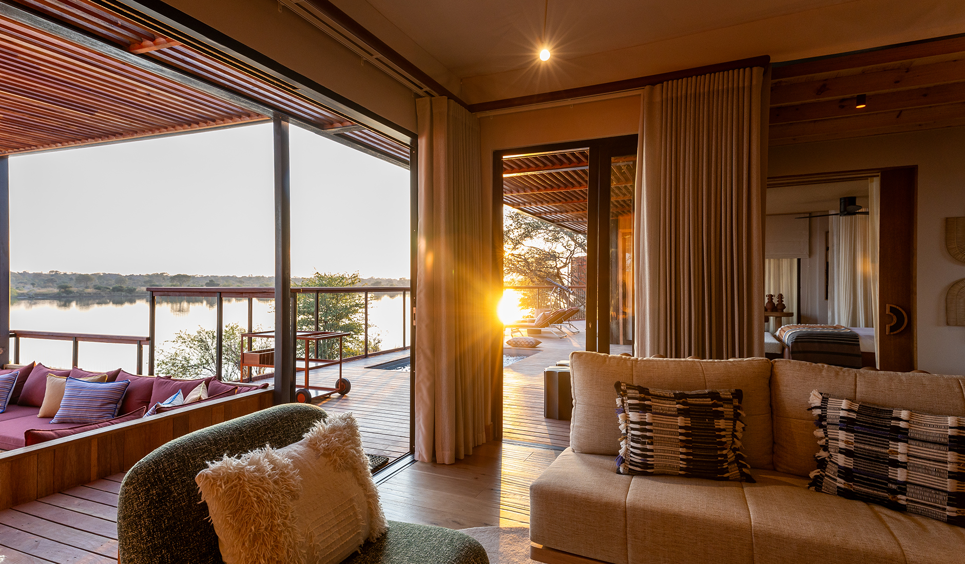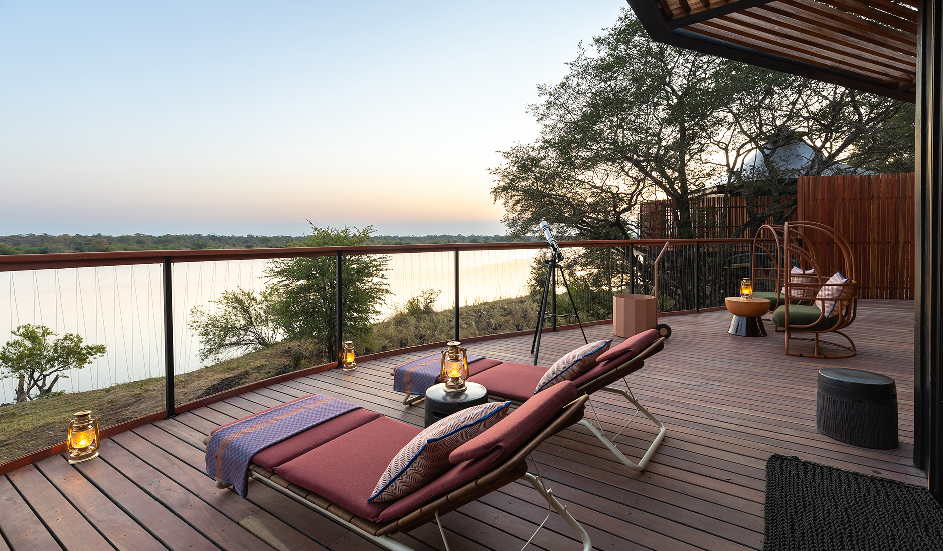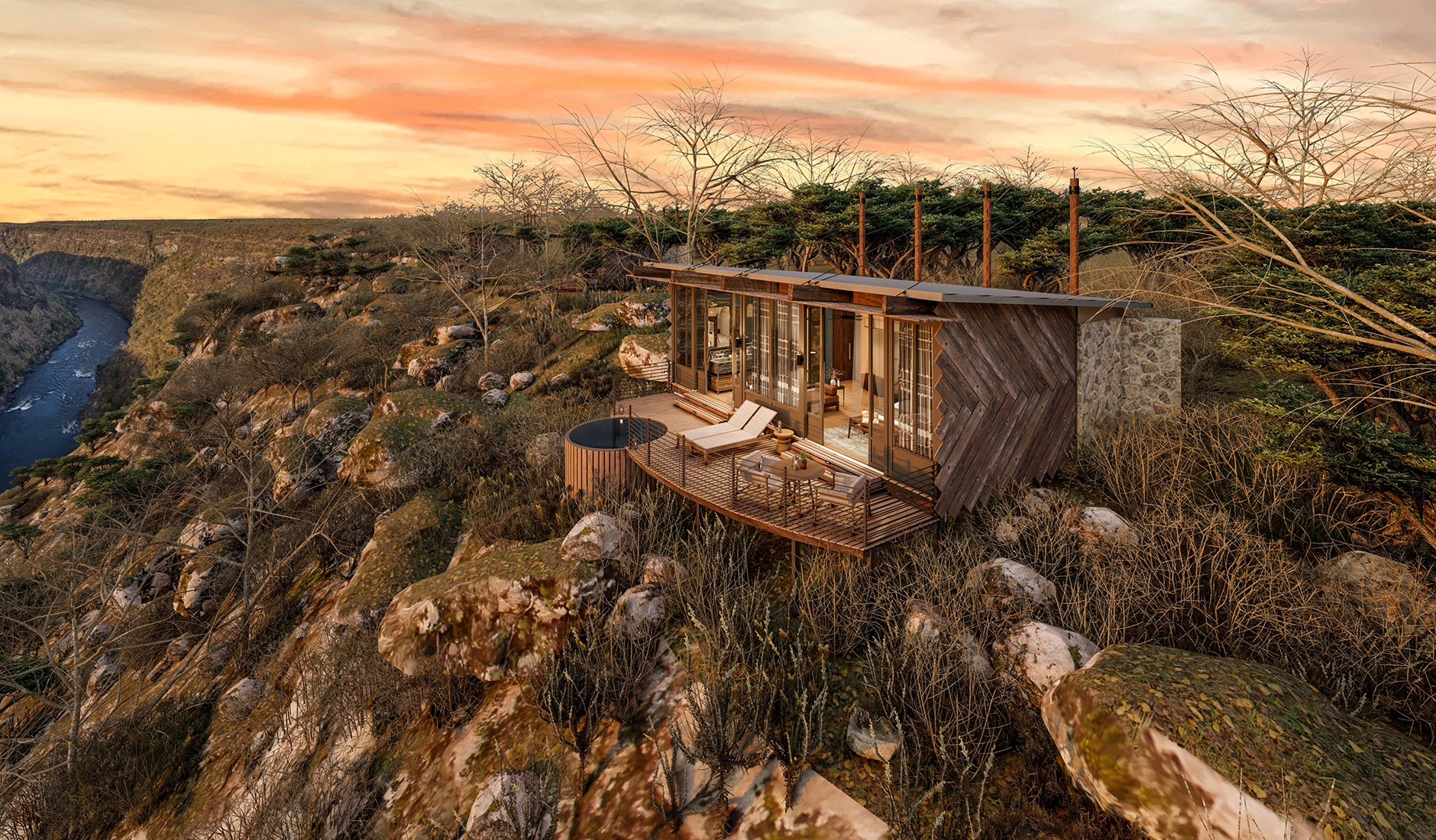Perched 180 metres above the Zambezi, Bupenyu Lodge overlooks the Batoka Gorge, just a short drive from Victoria Falls. The lodge has 11 suites, including a private villa, each with a plunge pool and a cantilevered deck offering sweeping river views and complete privacy.