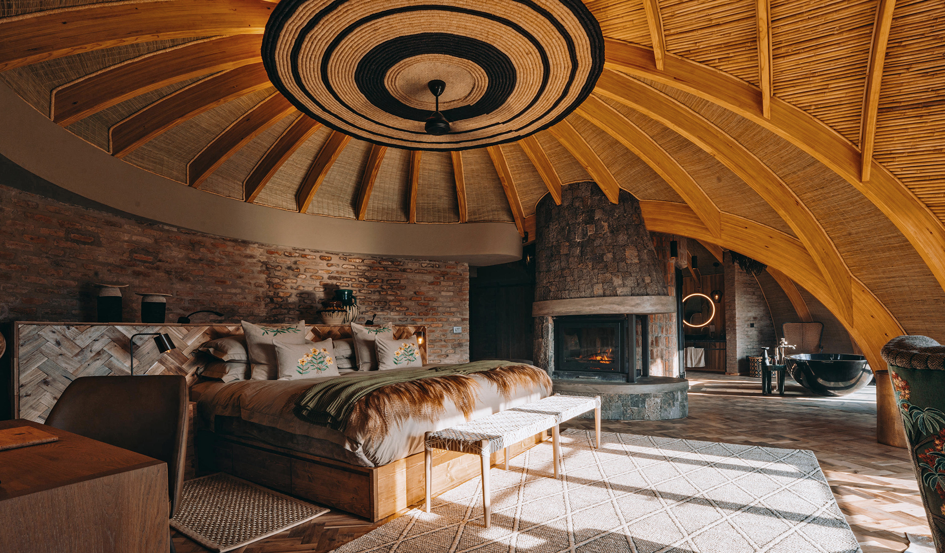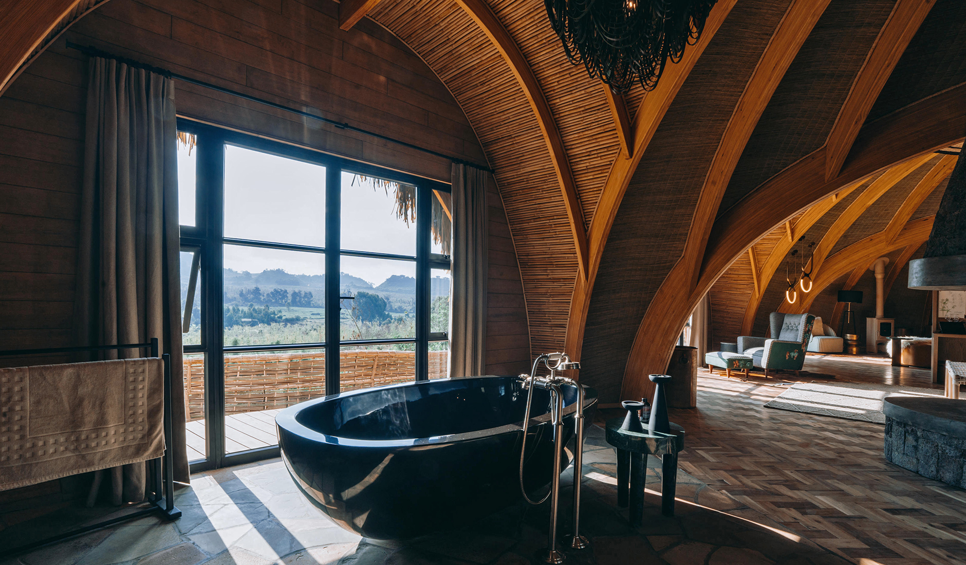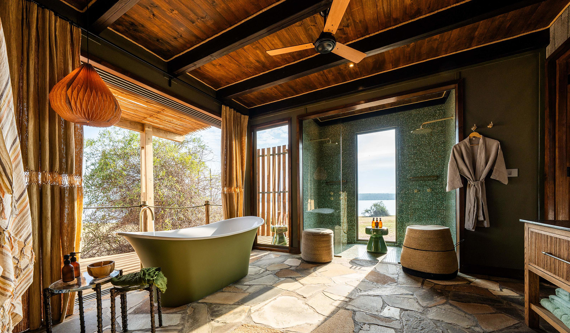 The villas are embedded into the terrain and designed for privacy, each with a wood-fired hot tub positioned to take in the changing light over the forest canopy. The focus here is less on spectacle and more on considered design, limited guest numbers, and proximity to some of Africa’s most sought-after gorilla trekking routes. Conservation remains central to the experience, with guests able to take part in ongoing reforestation work that continues to shape the surrounding reserve.