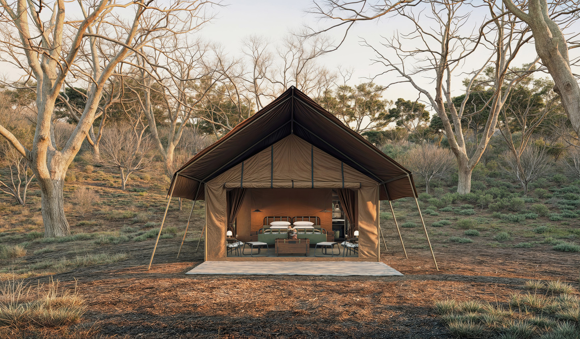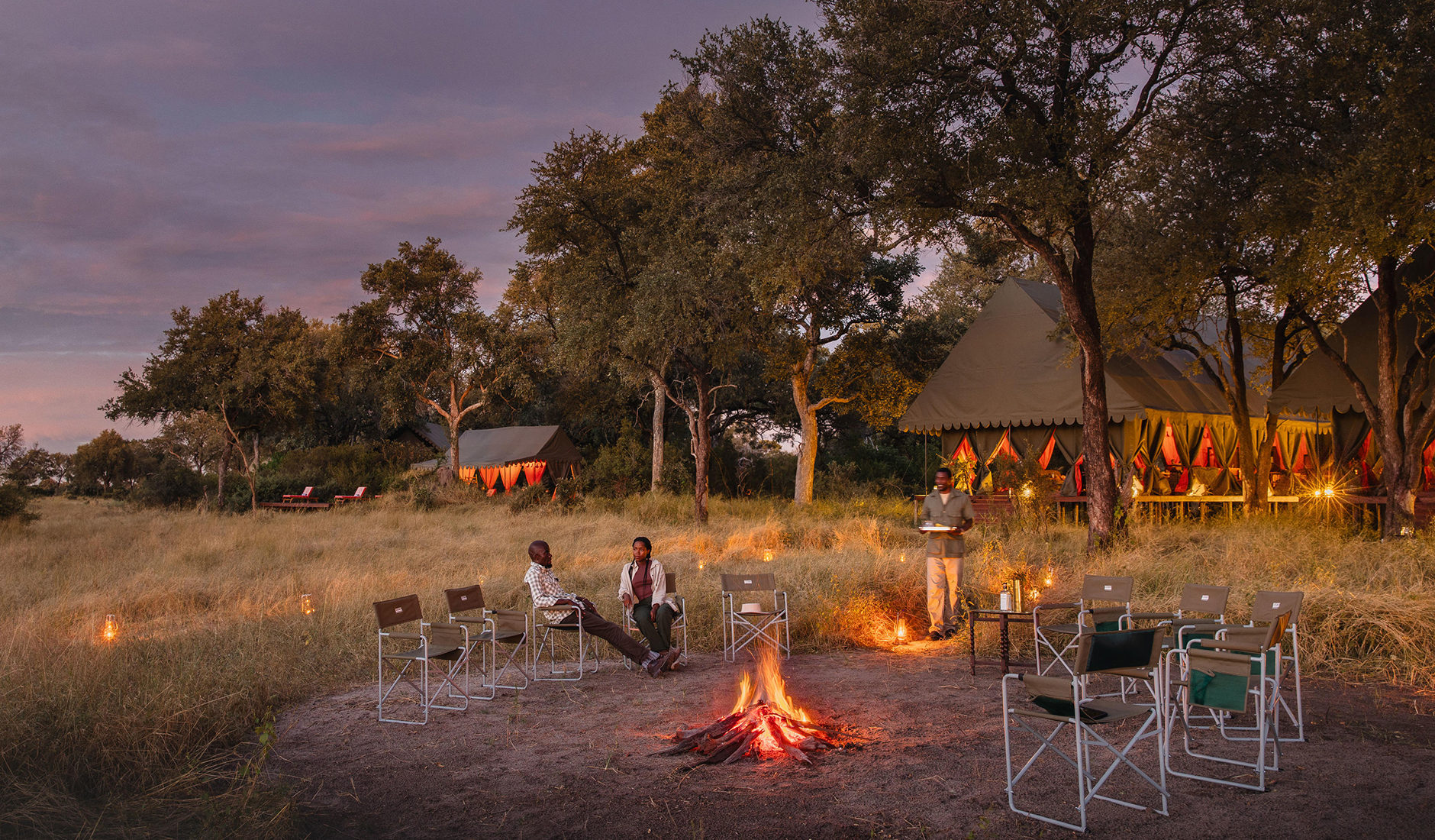 Sandibe Under Canvas is set in a game-rich concession, where sightings of lions, leopards, and wild dogs are common. Nxabega Under Canvas offers a quieter experience, with mokoro excursions, walking safaris, fishing, and guided game drives. Both camps run entirely on solar power, blending low-impact design with a close connection to the Delta’s rhythms and wildlife.