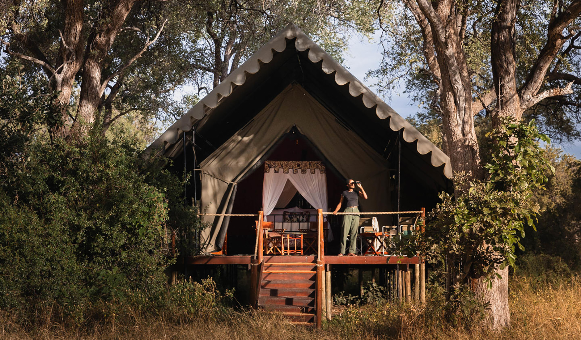 Opened in April 2025, Natural Selection’s Mbamba Camp offers a vintage safari experience in the northern Okavango Delta. The camp has 12 canvas tents, including family units, designed in an old-world style that blends with the surrounding landscape.
