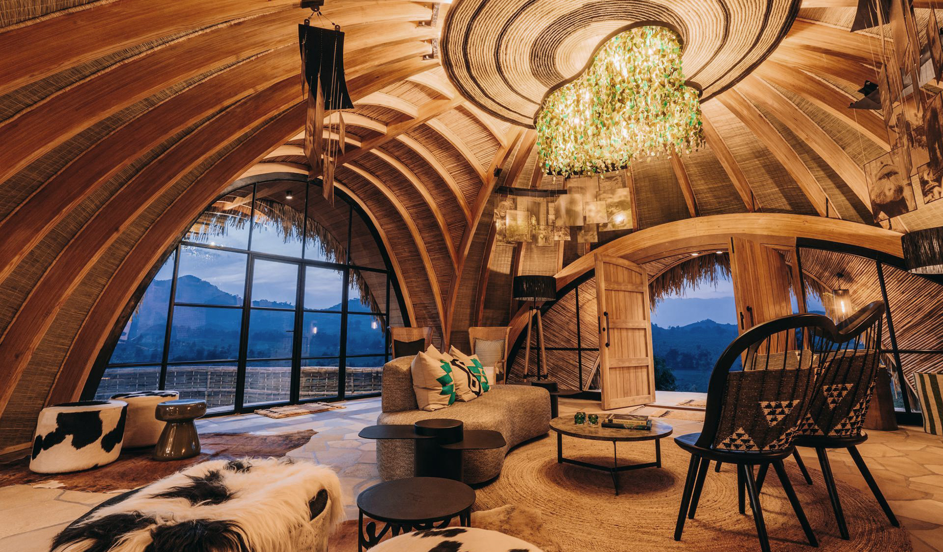 “Discover a place enveloped by the rainforest, where ancient volcanoes rise over every vista, and the profound presence of mountain gorillas is within your reach. […] The pace of the everyday becomes a distant memory here, and gives way to the rhythms of the rainforest.” — Wilderness Bisate Reserve