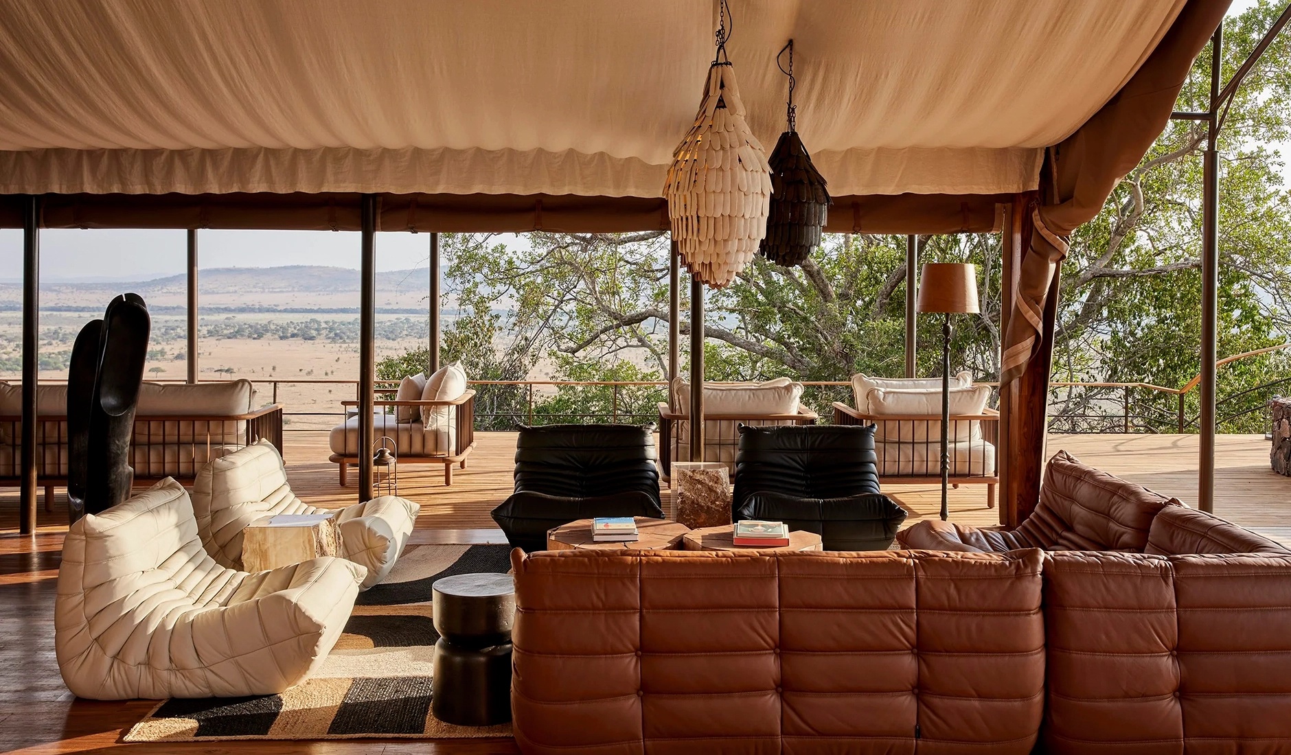 Laba Grumeti Art Lodge sits on a hilltop overlooking the Serengeti, just 35 minutes from the Grumeti airstrip. Part of the Laba Laba collection, the lodge is shaped by contemporary African art, featuring work by artists from South Africa, Kenya, the Ivory Coast, and Ethiopia. Art is woven into the guest experience, from the interiors of the 12 tented suites to the lounges and bar areas, where uninterrupted views of the bush frame the collection.