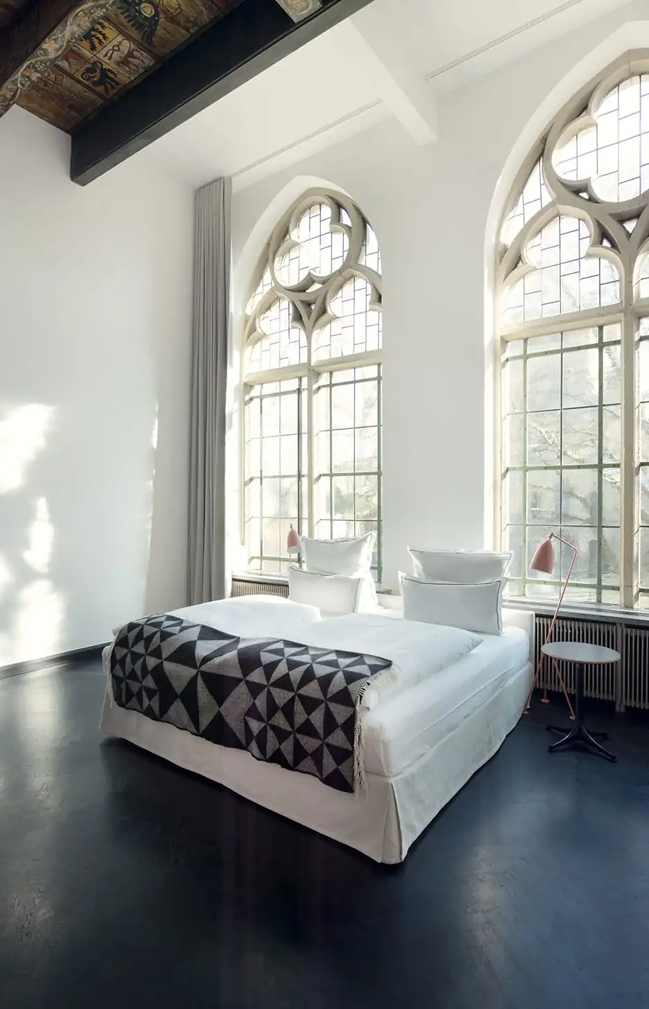 With much of the Neo-Gothic architectural frame left intact, each of the 34 rooms and suites are cut differently and befittingly furnished with individual character. Some of the suites feature six-meter high cross vaults, while the Salon Suite boasts a hand-painted medieval wooden ceiling from 1390.