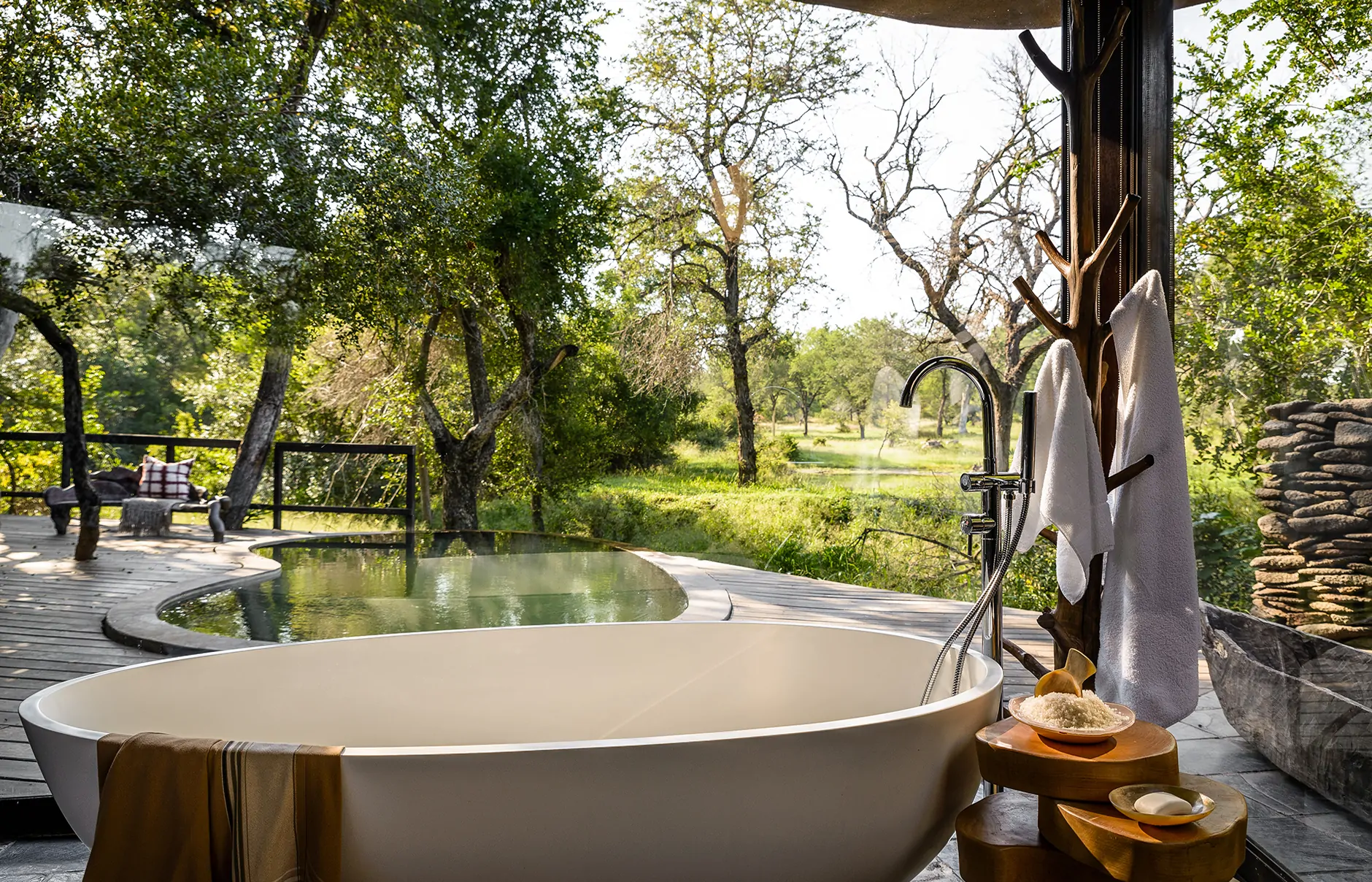 Opened to the elements or separated from the outdoors only by glass walls, the lodge feels at one with the environment, allowing a full engagement with the wildlife for which the Sabi Sand is so well known.