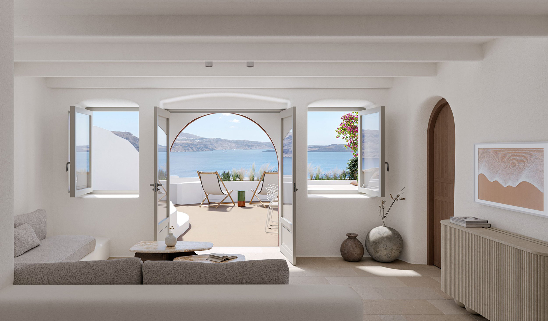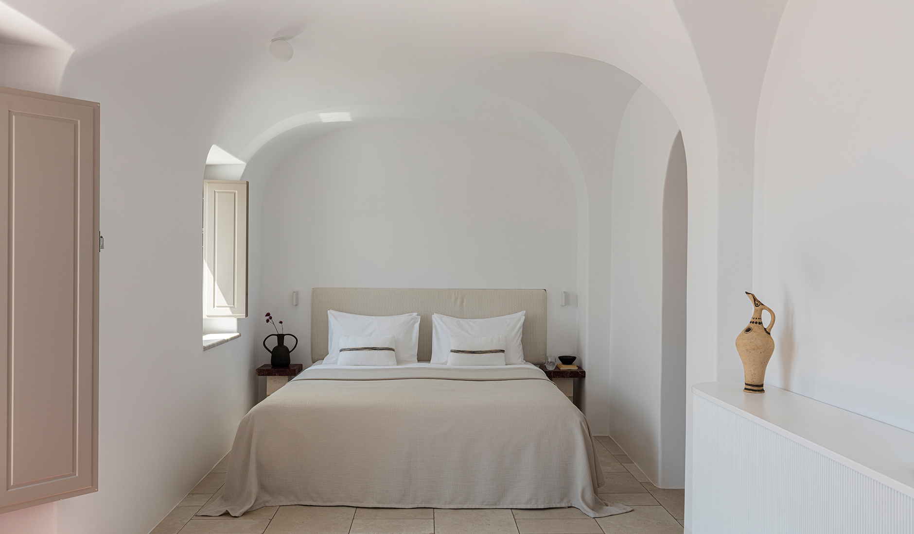 Katikies Santorini was the first luxury hotel on Santorini that fully embodied the island’s natural geology as an integral part of the design. Even today, it is hailed as the benchmark of the trend, with the Cycladic aesthetics tuned to perfection, synonymous with the Santorini style.