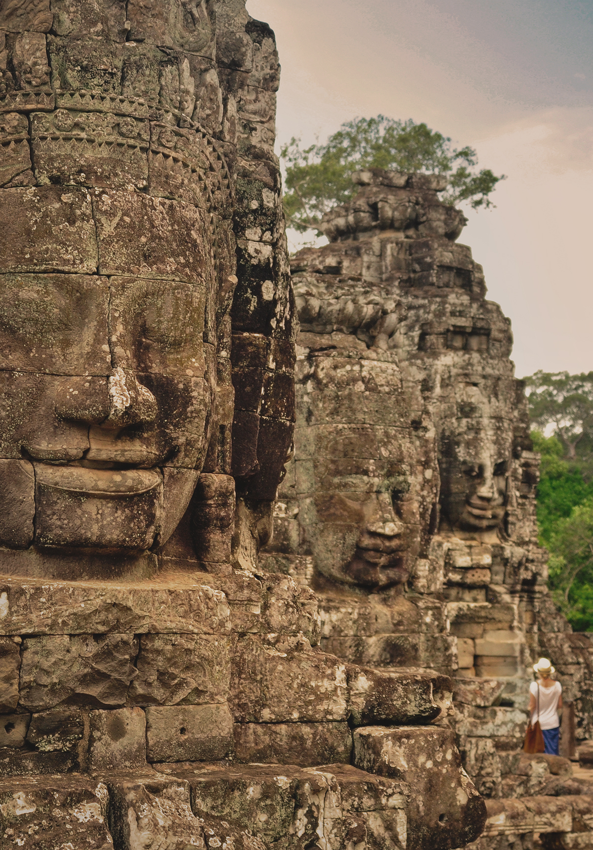 The Angkor Wat may be the most famous, but to many it is Bayon temple that remains the instantly recognizable icon of Cambodia. Or more precisely, the icons are the Bayon’s giant stone-carved Buddha faces. Their massive silhouettes jut out from the intricate towers of the temple, their mysterious smiles enchanting all who come to see the silent witnesses to the centuries of history.