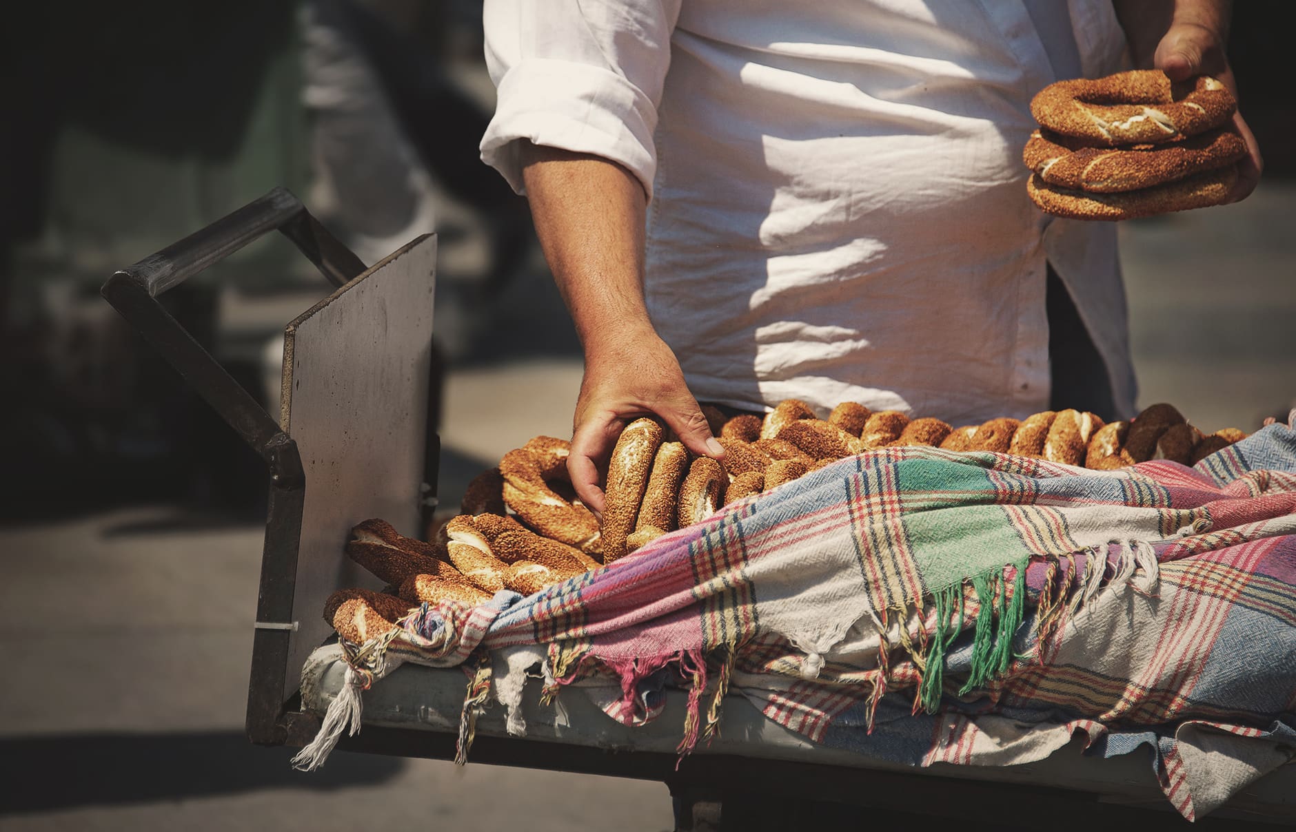 Start your day with menemen, a rich, spicy scramble of eggs, tomato, and peppers. Grab a simit — the sesame-crusted Turkish bagel — from a street vendor, pair it with strong Turkish tea, and watch the world go by. Don’t miss meze spreads, kebabs, or börek fresh from the oven. Sit down for manti (Turkish dumplings) and dolma (stuffed vegetables) at a neighborhood lokanta, where locals gather for homestyle dishes. Finish with Turkish delight, baklava, and a strong cup of Turkish coffee.