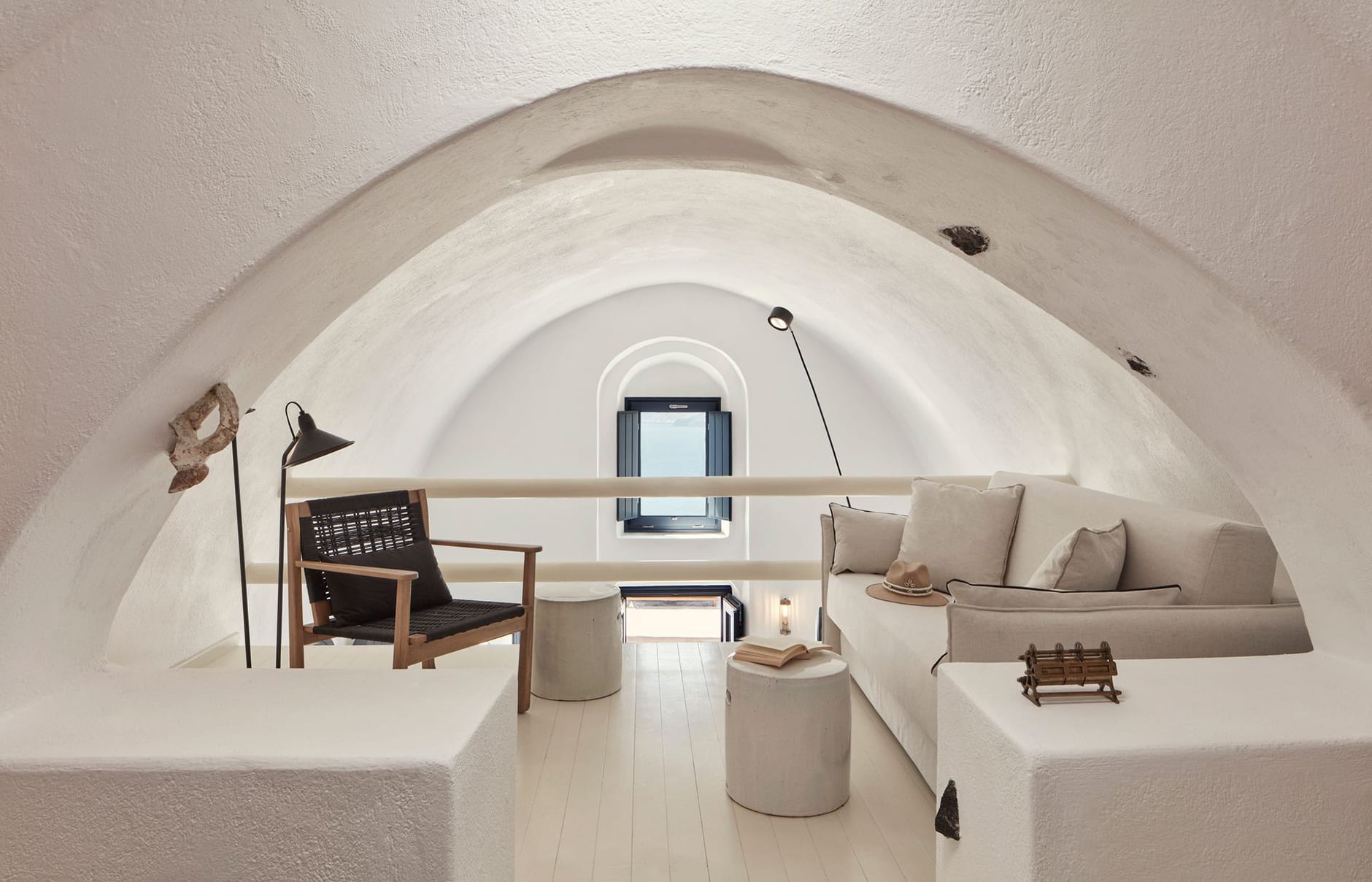 Perivolas occupies a collection of 300-year-old cliff-side cave houses, lovingly restored in a traditional Santorinian style, with pure white walls curved into sensual shapes. The rooms are spacious and comfortable, with minimalist interiors. Each guest room also features either a small private patio or a terrace. The hotel’s magnificent setting and organic design make it the most photographed hotel on the island.
