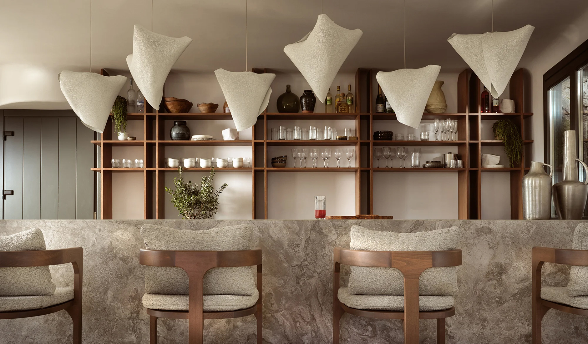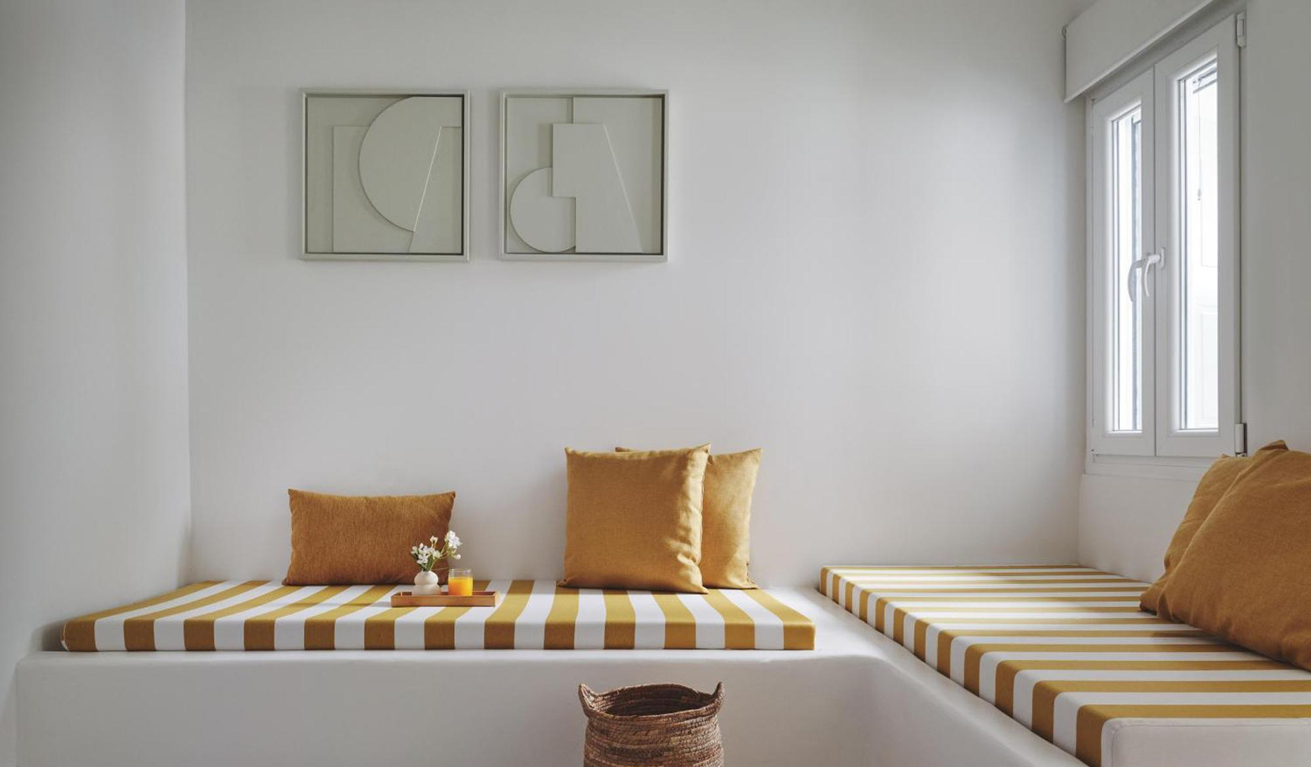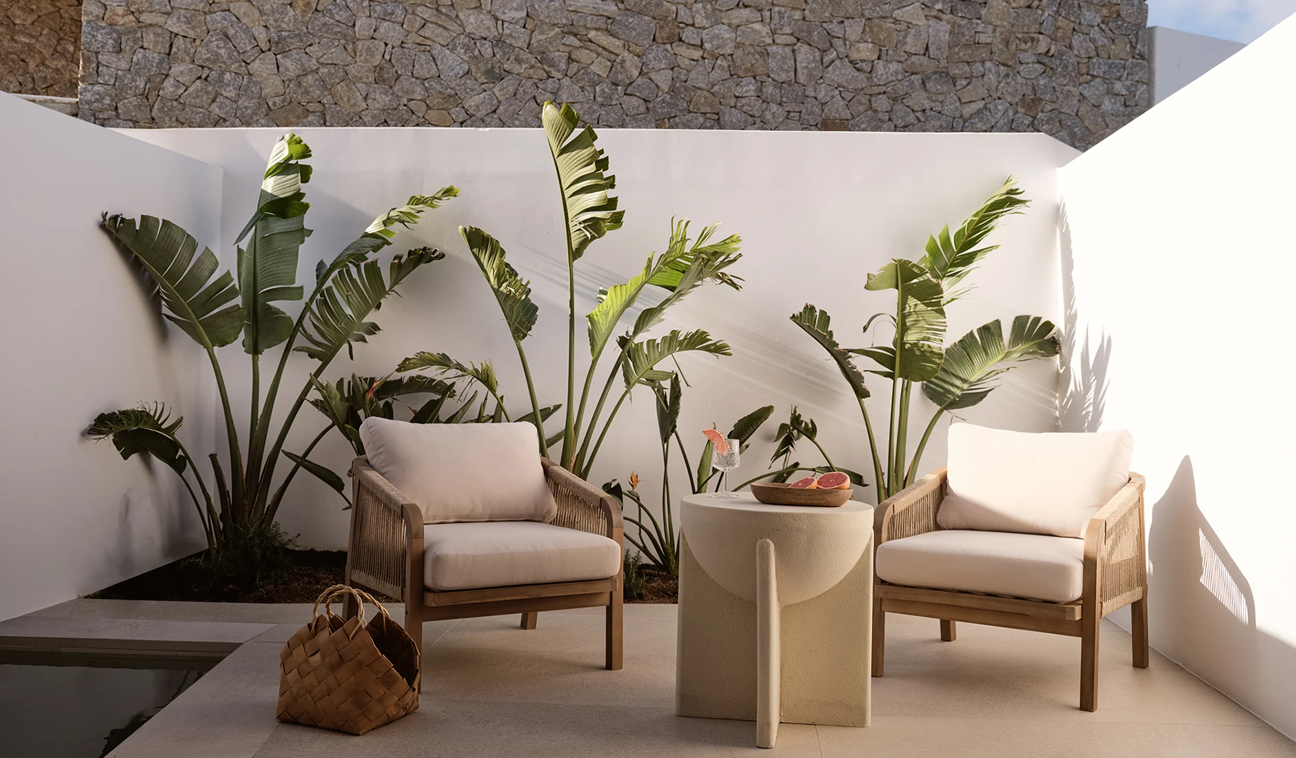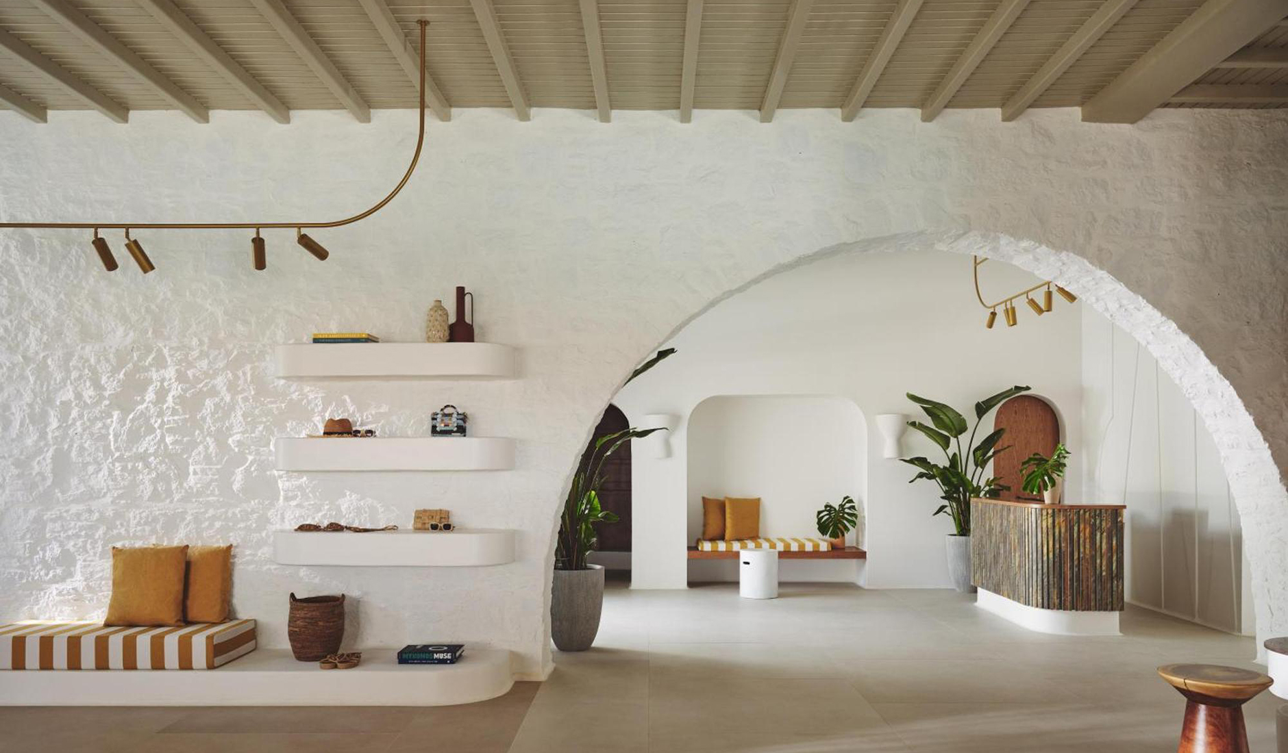Located on the shores of Ornos Bay, Ananea Mykonos is a 26-room adults-only hotel. The island has a fun-loving spirit, and Ananea embraces a laid-back vibe. Themes of relaxation, simple luxury, and the Greek concept of paréa—spending time with friends—are reflected in the hotel’s design. Its architecture draws inspiration from traditional whitewashed Cycladic houses, with organic, clean lines. The interiors capture the island’s easygoing nature through hand-woven fabrics, local art, and organic materials in bleached whites, lush greens, azure blues, and earthy browns. At the heart of the hotel is the swimming pool and an outdoor restaurant that embodies the essence of slow living.