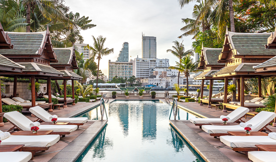 The Peninsula Bangkok is a riverside hotel with five-star hospitality that fits right alongside the best luxury hotels in the city. The property has 370 rooms that combine timeless elegance, contemporary comforts, and state-of-the-art technology. There are five outstanding dining venues, including a Thai restaurant overlooking the water alongside various bars. The 88-meter, three-tiered swimming pool with Thai salas for lounging is one of the focal points of the hotel experience. Another is the lobby, which often features live music. The Peninsula Spa menu mixes Thai, European, and Ayurvedic practices. Facilities also include Fitness Centre and outdoor tennis courts.