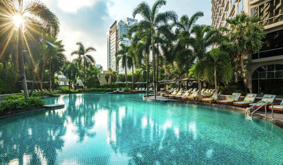 Positioned as Thailand’s top 5-star business hotel, Conrad Bangkok combines luxury and technology to ensure an all-around experience for both work and leisure. Boasting an ample events space and a 24-hour fitness center, the hotel also comes with a range of dining options. Various bars include the Diplomat Bar, which hosts live jazz performances. The hotel’s seventh floor is dedicated to the full-service spa. The wellness program covers everything from hydrotherapy facilities to Balinese yoga massages and men’s facials. Located next to one of the most prominent addresses in Bangkok’s commercial district (All Seasons Place), the hotel is well-situated as a gateway to some of the city’s best shopping, dining, and entertainment.